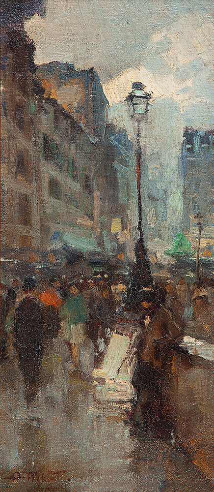 Dario Mecatti (Florença, Itália, 1909 - São Paulo, SP, 1976). Pintor e desenhista. Em Florença, por volta de 1927, pinta cartazes para a sala de cinema de m primo. Recebe orientação de Camillo Innocenti, pintor e professor italiano, porém não curse nenhuma instituição de ensino direcionado à arte. 1933 é o ano de sua primeira exposição, também na cidade de Florença. Em seguida, parte em viagem para o Norte da África, percorrendo diversos países como Líbia, Tunísia e Argélia e realizando exposições. Visita o Marrocos, entre 1936 e 1939, que lhe serve de inspiração para a produção de trabalhos que retratam os costumes da região. Em 1939, viaja para a Ilha de São Miguel, nos Açores. Em 1940, ao lado de Renzo Gori e Silvio Nigri, também pintores, viaja para o Brasil. É no Rio de Janeiro que realiza sua primeira exposição no país, na Sociedade Brasileira de Belas Artes. Viaja pelo estado de Minas Gerais para depois se fixar na cidade de São Paulo onde trabalha na Galeria Fiorentina entre 1941 e 1945. Em 1941 recebe a medalha de prata no sétimo Salão Paulista de Belas Artes. 1945 é o ano de casamento com a pintora Maria da Paz. Constrói, em 1946, casa-estúdio onde realiza, anualmente, exposições individuais. Retorna à Itália em 1947 e a partir de então, passa a viver e expor entre Brasil e Europa. Também realiza mostras em Buenos Aires e Montevidéu, nas décadas de 1940 e 1950. Entre os anos 1969 e 1978 é artista exclusivo da Galeria Irlandini na cidade do Rio de Janeiro. Em 1978, recebe homenagem póstuma no 42 Salão Paulista de Belas Artes. Apesar de ter transitado pela pintura de paisagens e retratos, Dario Mecatti se destaca, como artista plástico, pela pintura de gênero. As viagens ao Norte da África resultaram em trabalhos que retratam o cotidiano da região, assim como tradições e expressões culturais típicas. Mecatti filia-se, formalmente, ao grupo italiano de pintores italianos como macchiaioli cuja premissa é a reação à rigidez acadêmica. O grupo compreende a pintura como cor, luz e sombra cuja função é enfrentar direta e sinceramente, a realidade. Até os anos 1950, Mecatti compartilha destes princípios, momento em que cede lugar à geometrização das formas numa espécie de assimilação tardia dos paradigmas modernistas.