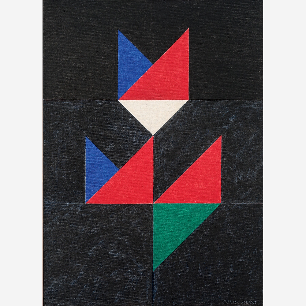 Décio Luiz Monteiro Vieira (Petrópolis RJ 1922 - Rio de Janeiro RJ 1988). Pintor, desenhista. Estuda desenho e pintura com Axl Leskoschek (1889 - 1975) na Fundação  Getúlio Vargas - FGV do Rio de Janeiro, em 1948. A partir desse ano, entra em contato com a gravadora Fayga Ostrower (1920 - 2001) e tem aulas como pintor Ivan Serpa (1923 - 1973) no Museu de Arte Moderna do Rio de Janeiro - MAM/RJ. Na década de 1950, integra o Grupo Frente, com Lygia Pape (1927 - 2004), Lygia Clark (1920 - 1988), Hélio Oiticica (1937 - 1980), e outros. Participa do Grupo Neoconcreto, dissidência carioca do grupo concretista. Entre 1954 e 1962, produz estampas para tecidos com Fayga Ostrower. Em 1966, em São Paulo, trabalha com Alfredo Volpi (1896 - 1988) no afresco Dom Bosco, para o Palácio dos Arcos, em Brasília, e com ele estuda a técnica da têmpera e passa a apresentar uma produção abstrata. Na década de 1970, volta à figuração, dedicando-se principalmente à pintura de paisagem, e leciona no MAM/RJ, nos cursos coordenados pelo crítico Frederico Morais. Com a orientação de Ivan Serpa cria, com Dulce Vieira, uma escola de arte para as crianças da comunidade da favela da Rocinha, no Rio de Janeiro. É realizada exposição retrospectiva de sua produção, intitulada Décio Vieira: Resumo de uma Trajetória, na Galeria Rodrigo de Mello Franco, da Funarte, no Rio de Janeiro, em 1992.
