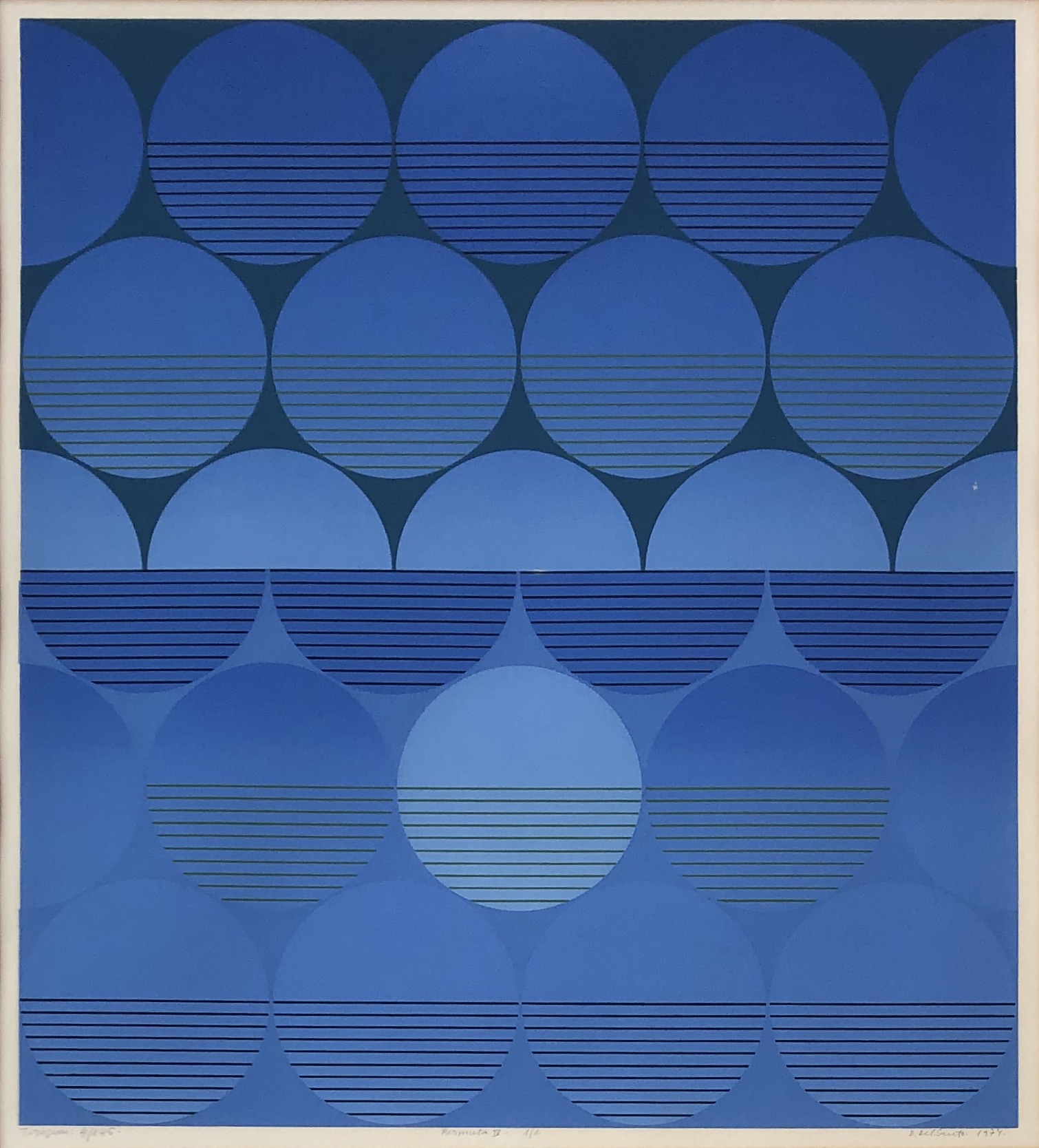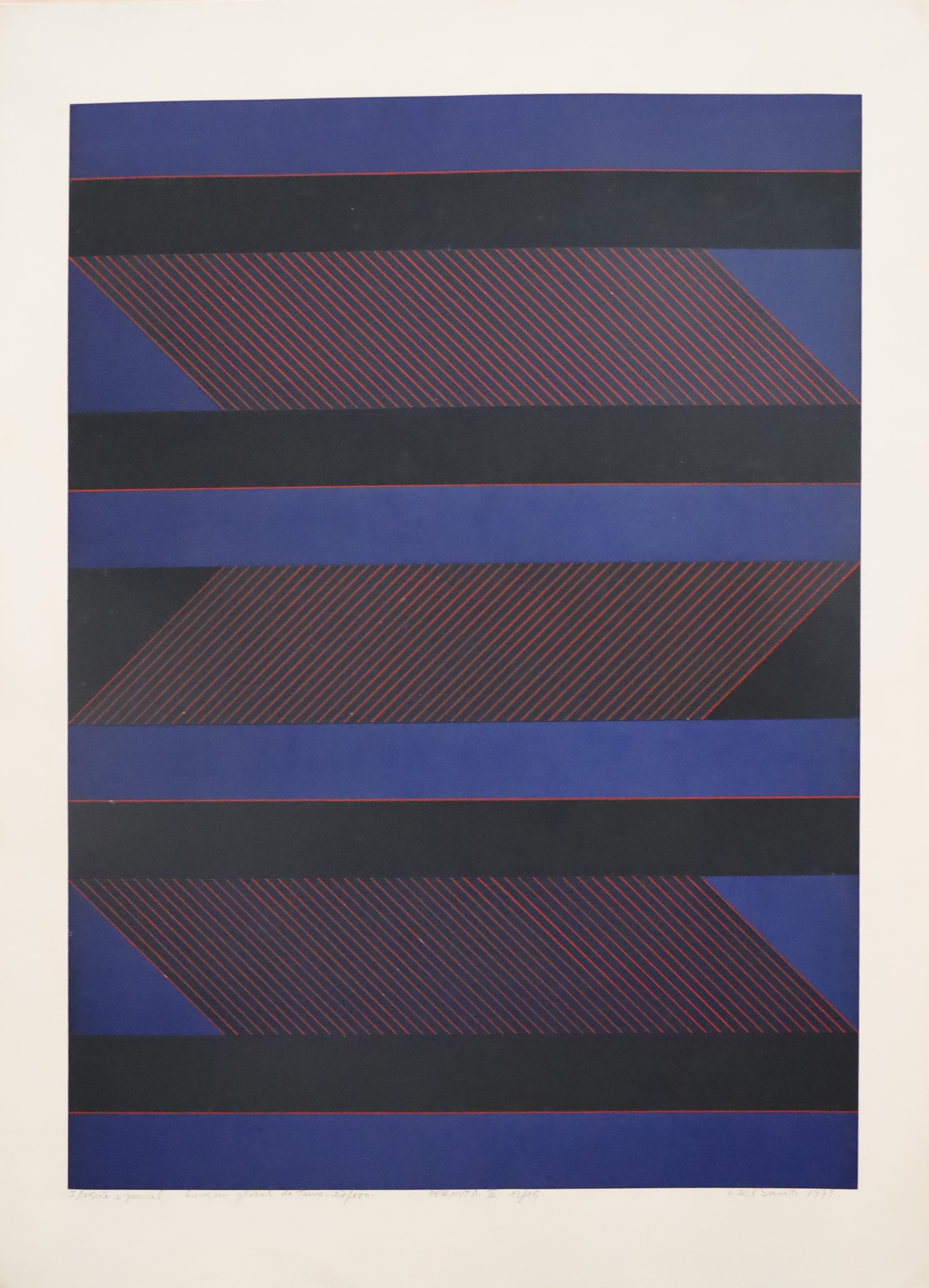 Dionísio Del Santo - Espaço - tiragem global do tempo - 58-100 - variação 3-6, permuta II. Serigrafia, 70x50 cm, 1972, A.C.I.D. a lápis. Sem moldura