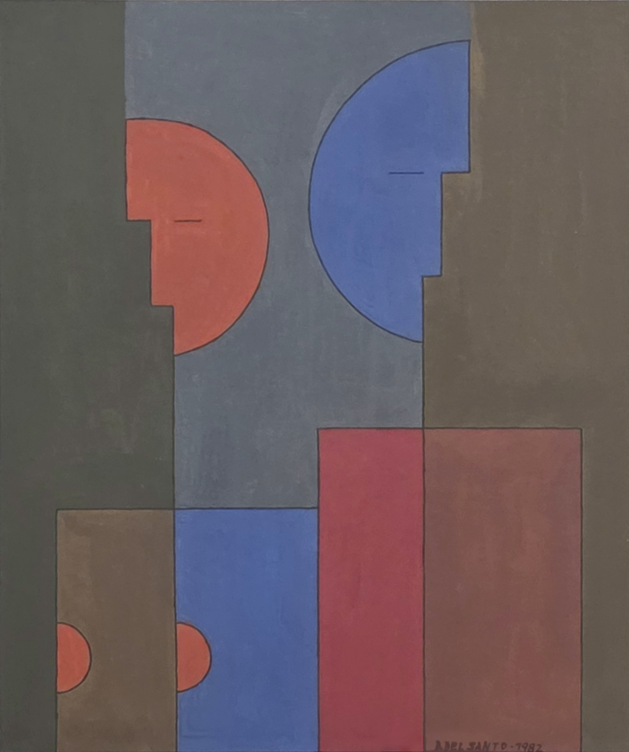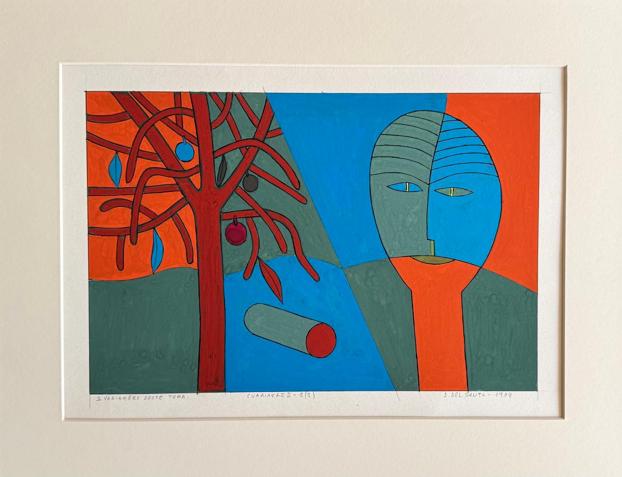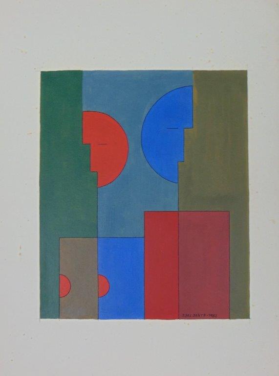 Dionísio Del Santo - Casal. Guache sobre papel, 30x25 cm, 1982, A.C.I.D. Com moldura