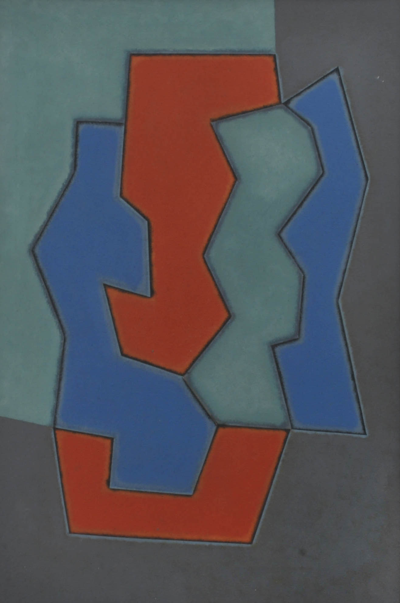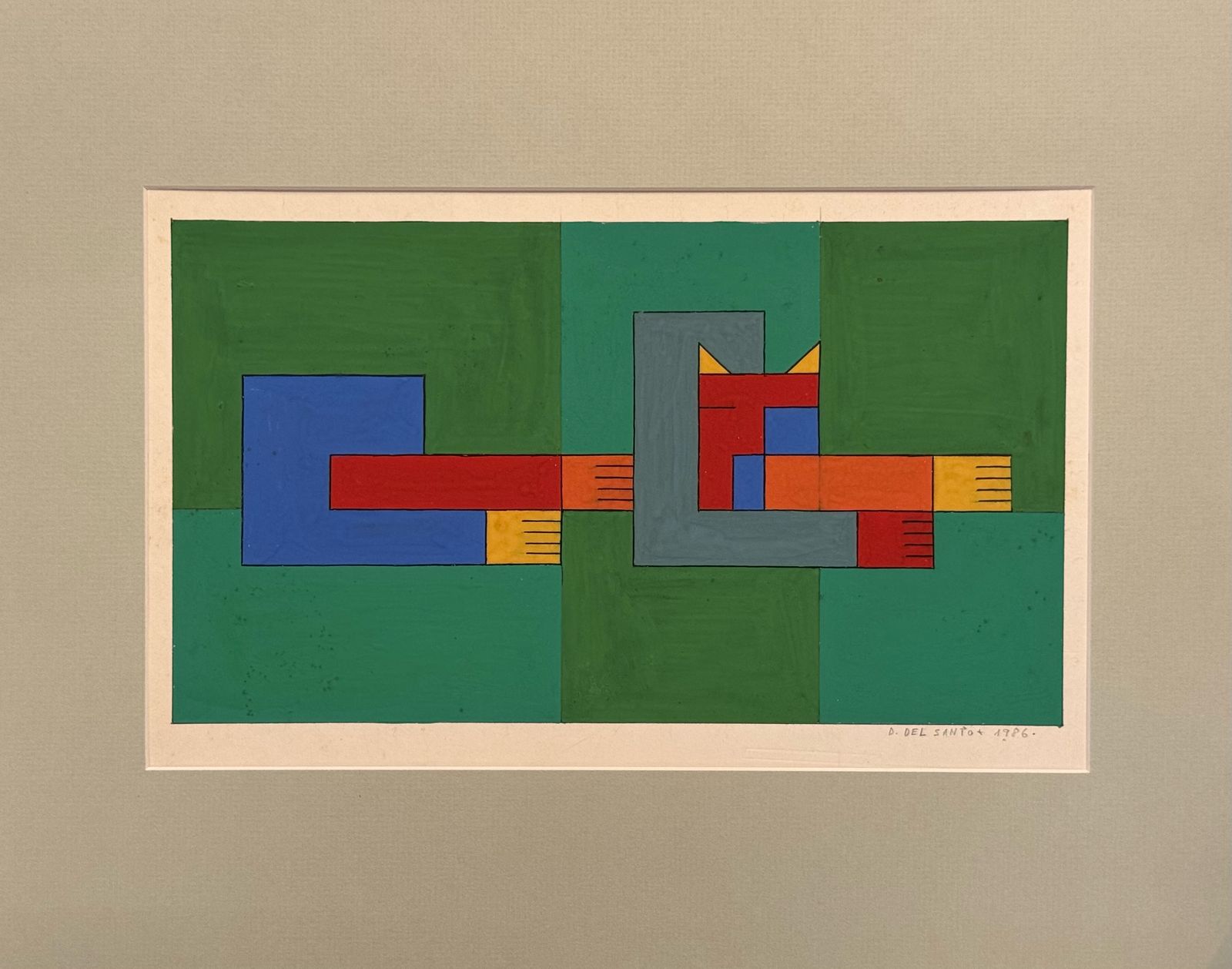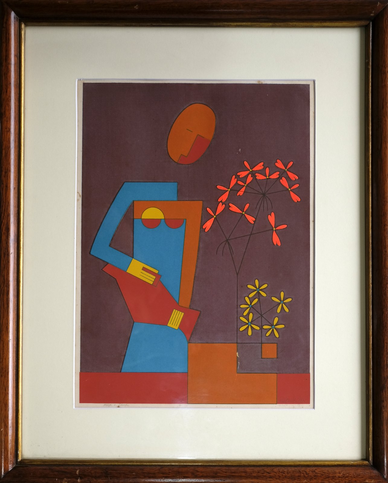 Dionísio Del Santo - Casal. Guache sobre papel, 30x25 cm, 1982, A.C.I.D. Com moldura