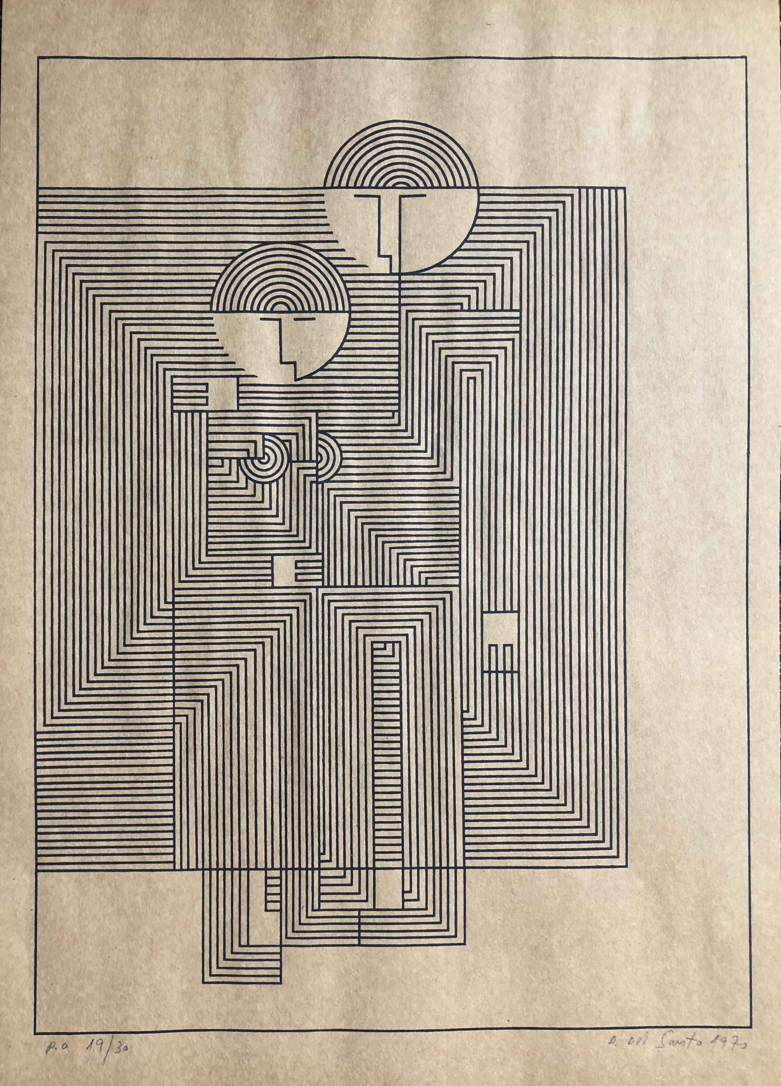Dionísio Del Santo - Casal - P.A. - 18-30. Serigrafia, 42x30 cm, 1970, A.C.I.D. a lápis. Sem moldura