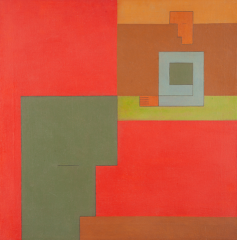 DIONISIO DEL SANTO, Menino Desenhista, Acrílica sobre Tela, ACID e verso, 80 x 80cm (m.i). Datado 1985