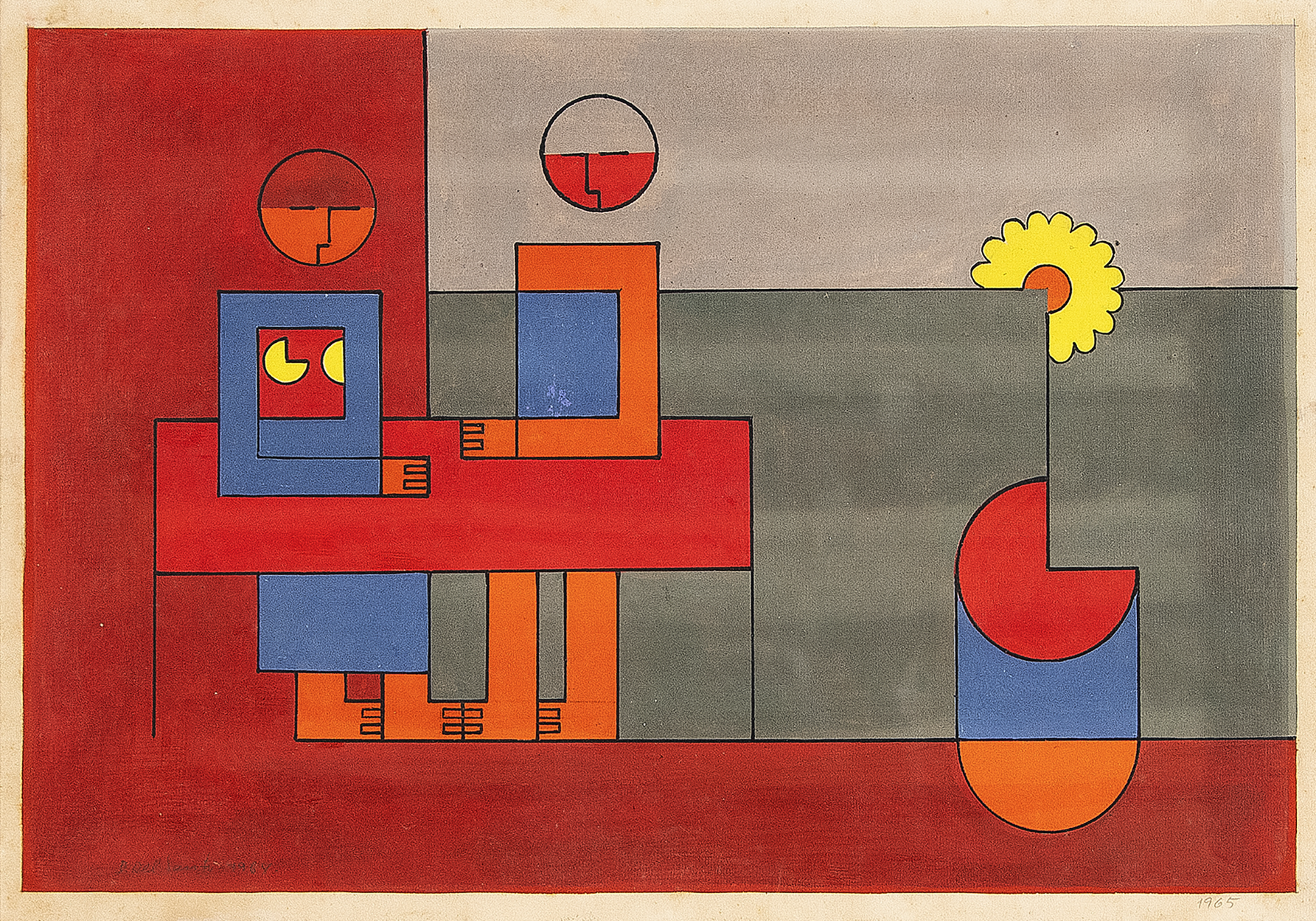 Dionísio Del Santo - Casal. Guache sobre papel, 30x25 cm, 1982, A.C.I.D. Com moldura