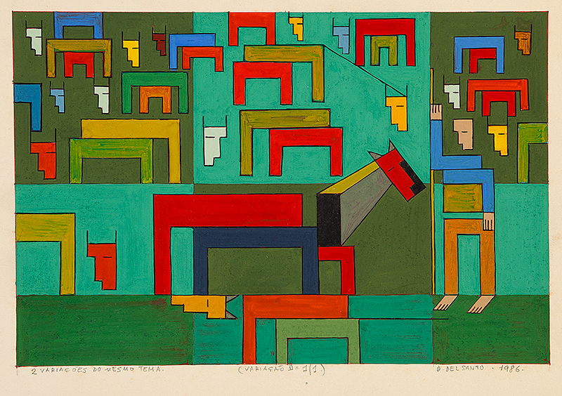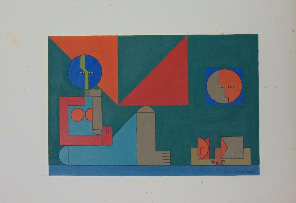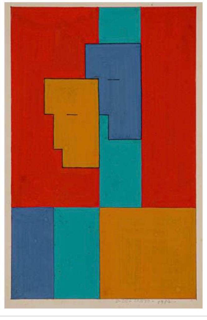 Dionísio Del Santo - Casal. Guache sobre papel, 30x25 cm, 1982, A.C.I.D. Com moldura