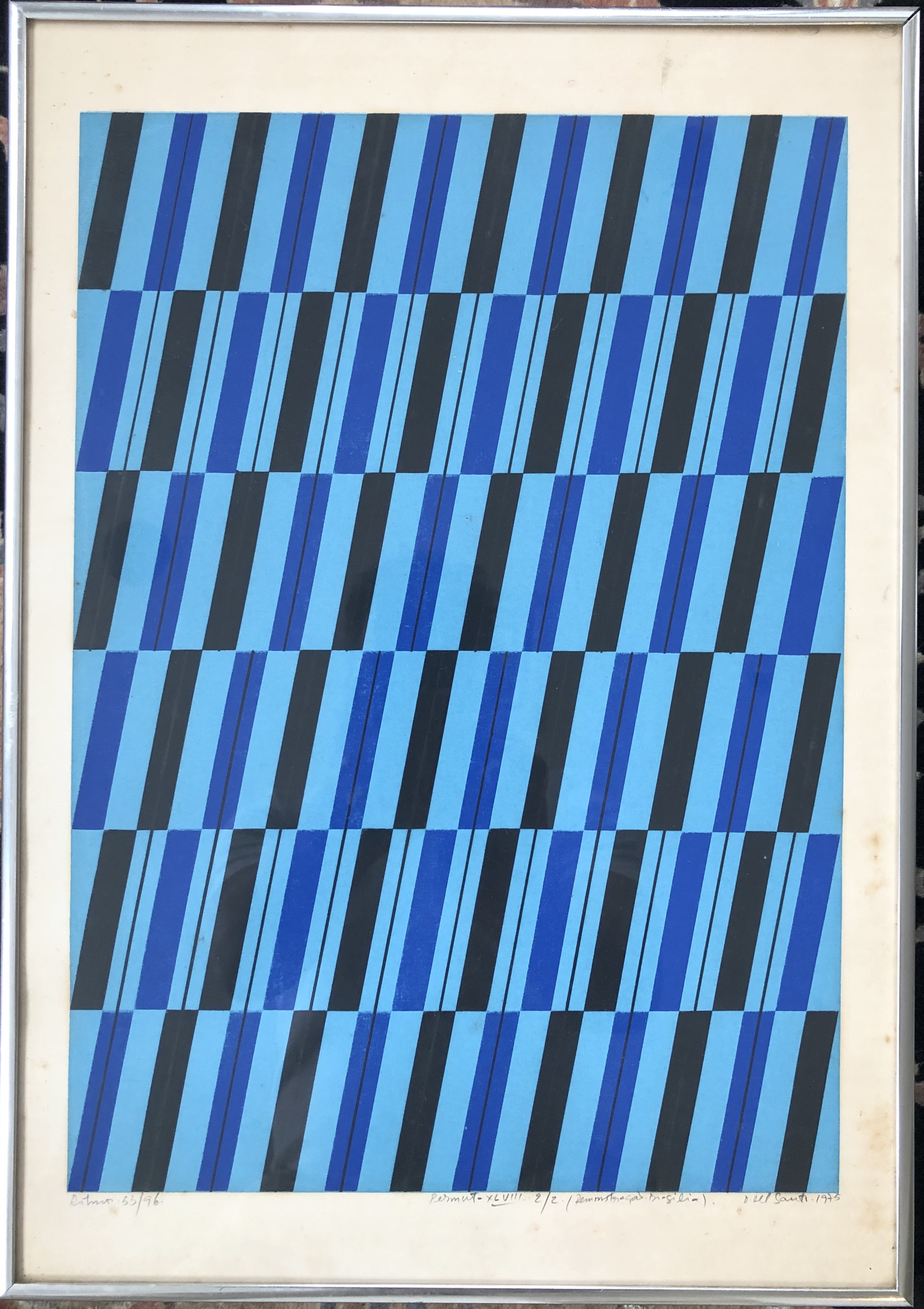 Dionísio Del Santo - Espaço - tiragem global do tempo - 58-100 - variação 3-6, permuta II. Serigrafia, 70x50 cm, 1972, A.C.I.D. a lápis. Sem moldura