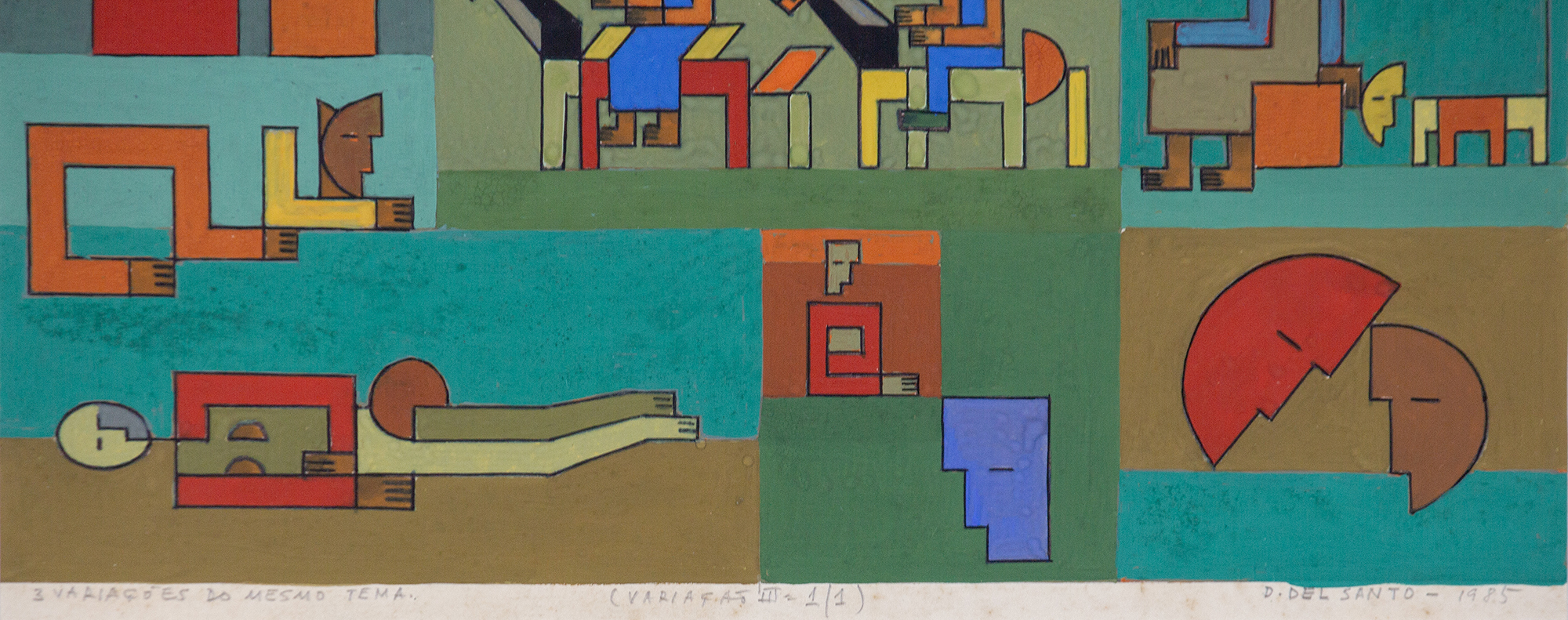 Dionísio Del Santo - 3 variações do mesmo tema - (Variação I - 1/1) - Guache sobre cartão. - Assinado e datado 1985 inferior direito. - Titulado inferior esquerdo. - 20 x 28 cm.