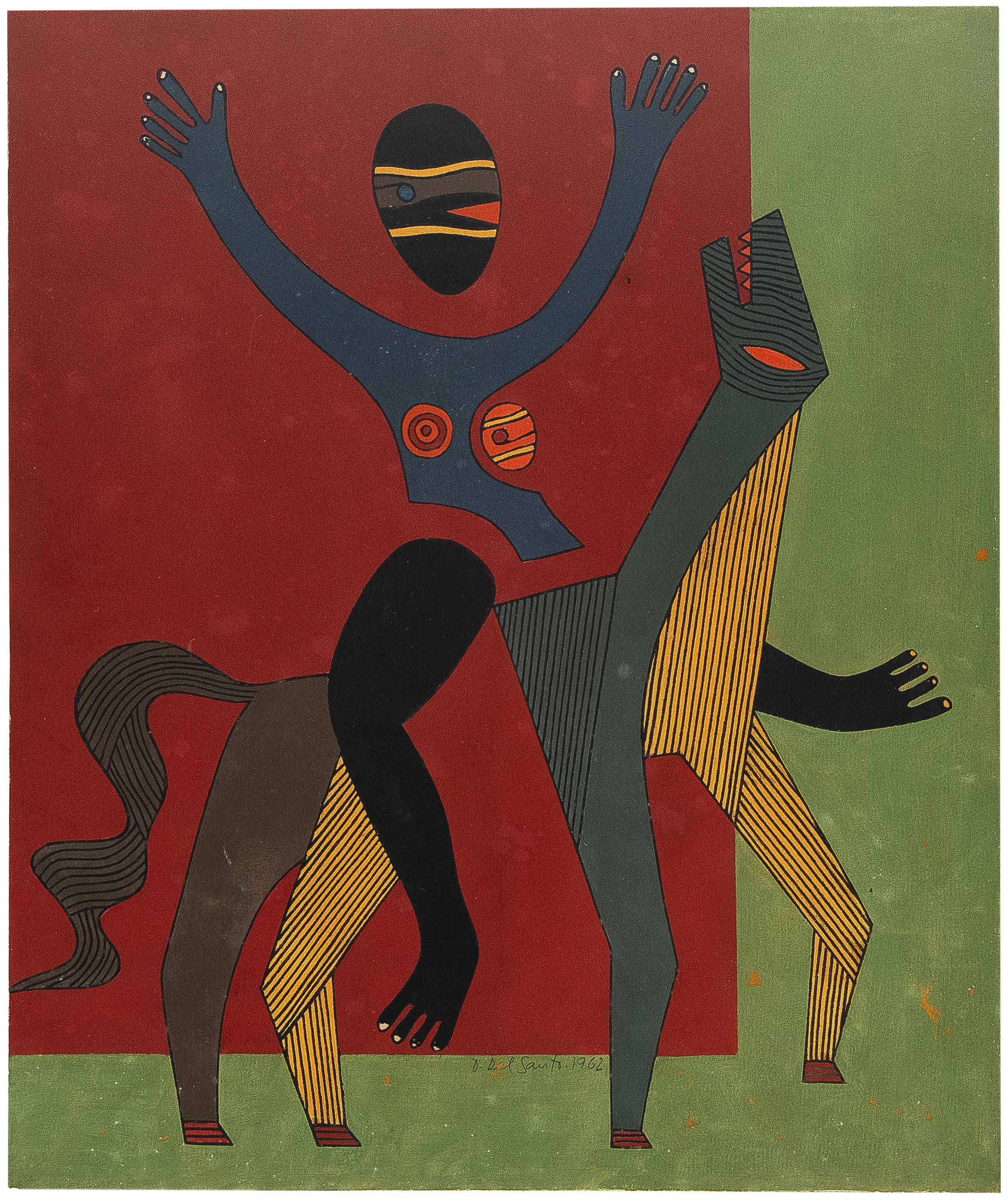 Dionísio Del Santo - Cavaleiro - Guache sobre papel. - Assinado e datado 1962 centro inferior. - 33 x 27.5 cm.
