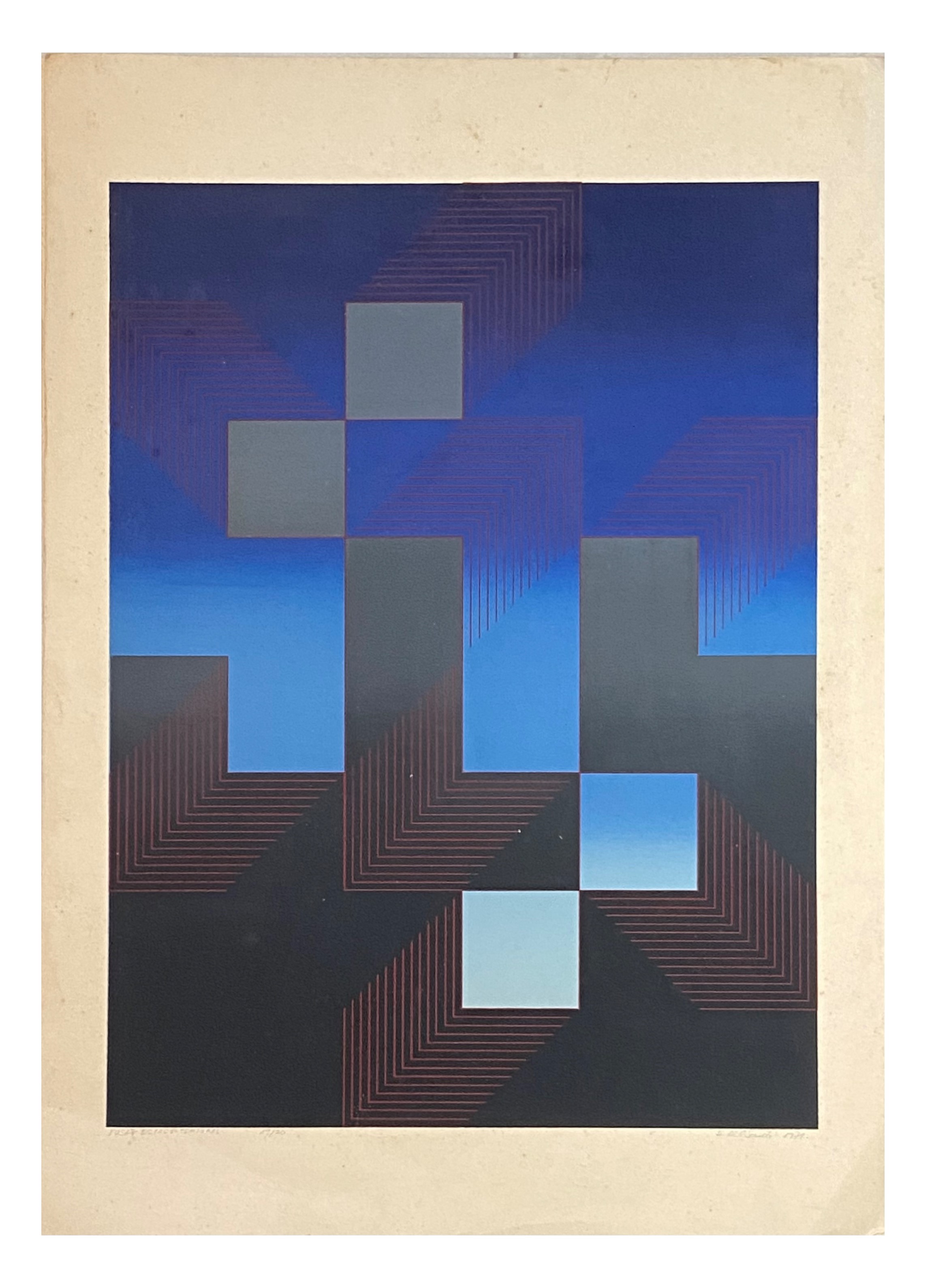 Dionísio Del Santo - Espaço - tiragem global do tempo - 58-100 - variação 3-6, permuta II. Serigrafia, 70x50 cm, 1972, A.C.I.D. a lápis. Sem moldura