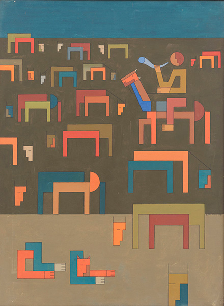 Dionísio Del Santo - Casal. Guache sobre papel, 30x25 cm, 1982, A.C.I.D. Com moldura