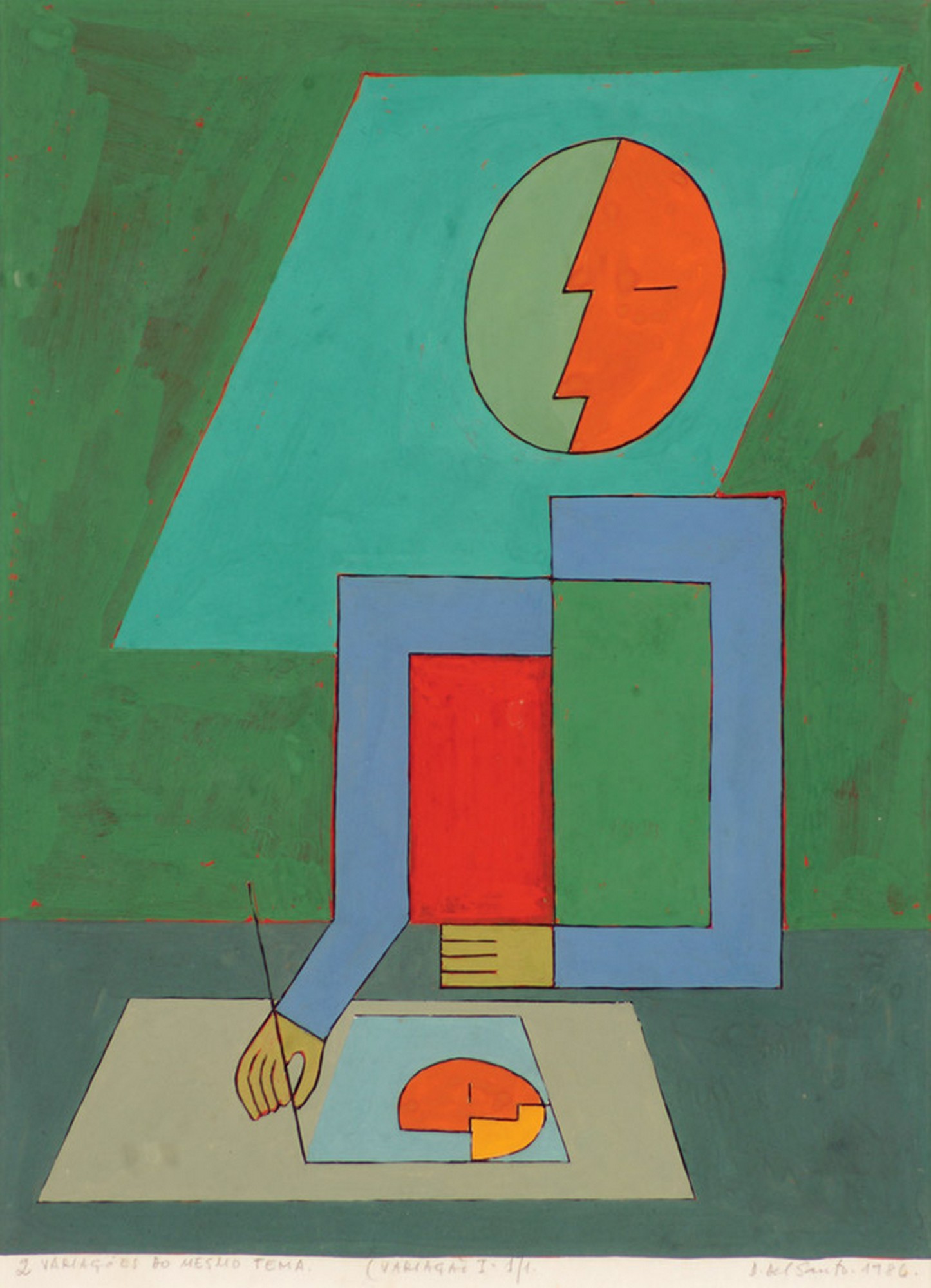 DIONISIO DEL SANTO, Menino Desenhista, Acrílica sobre Tela, ACID e verso, 80 x 80cm (m.i). Datado 1985