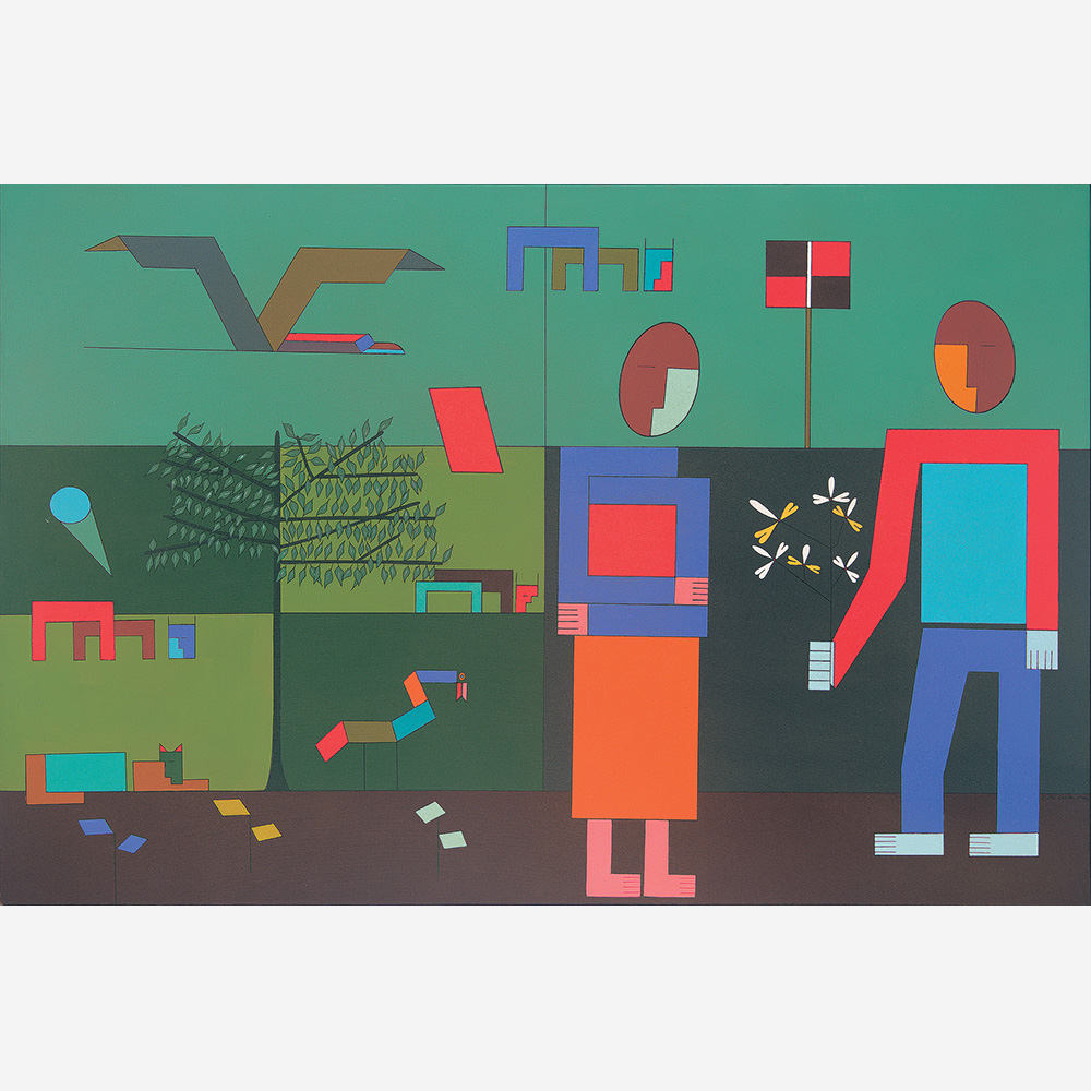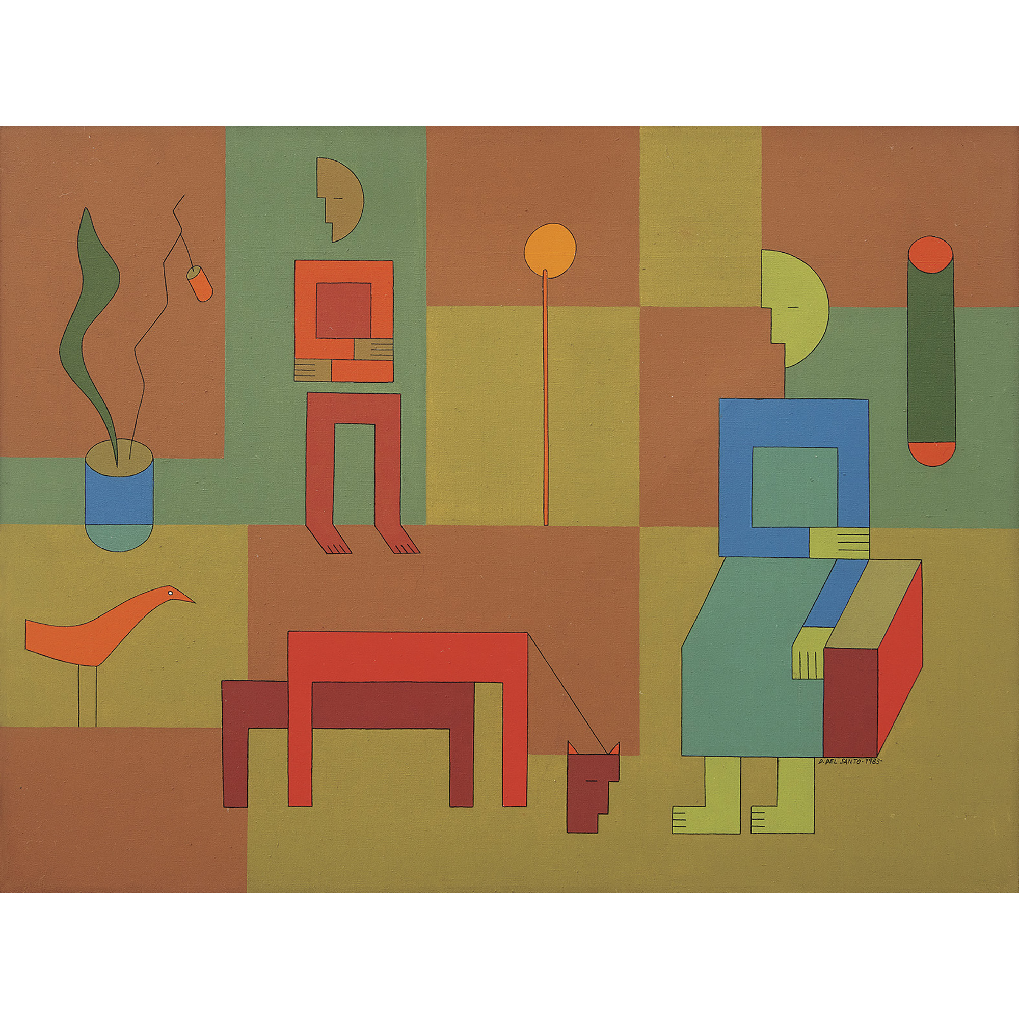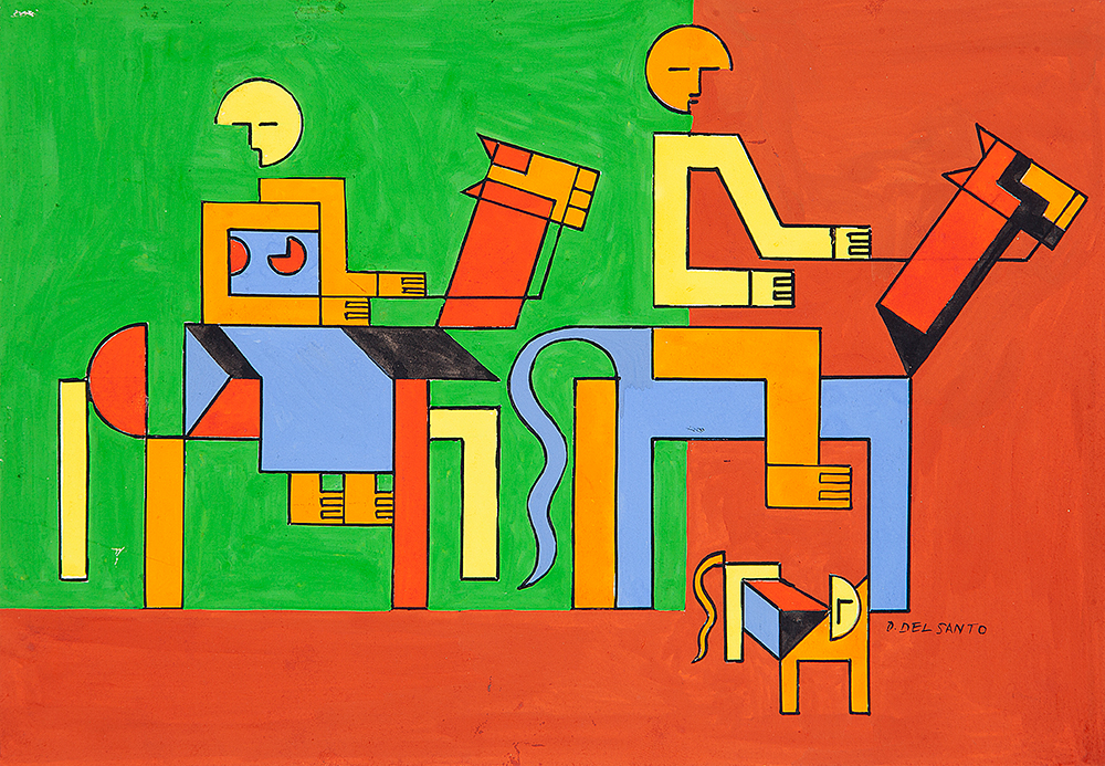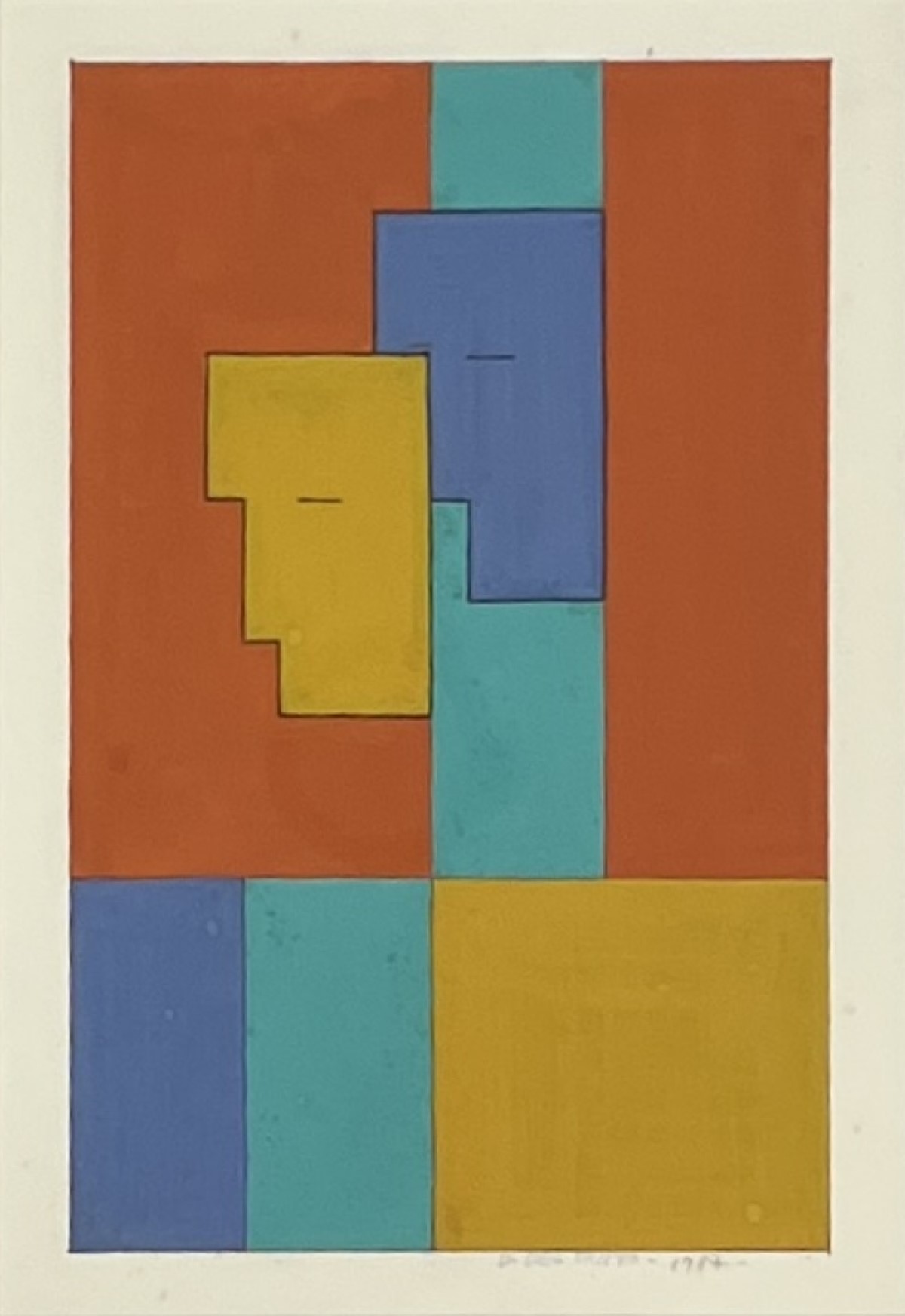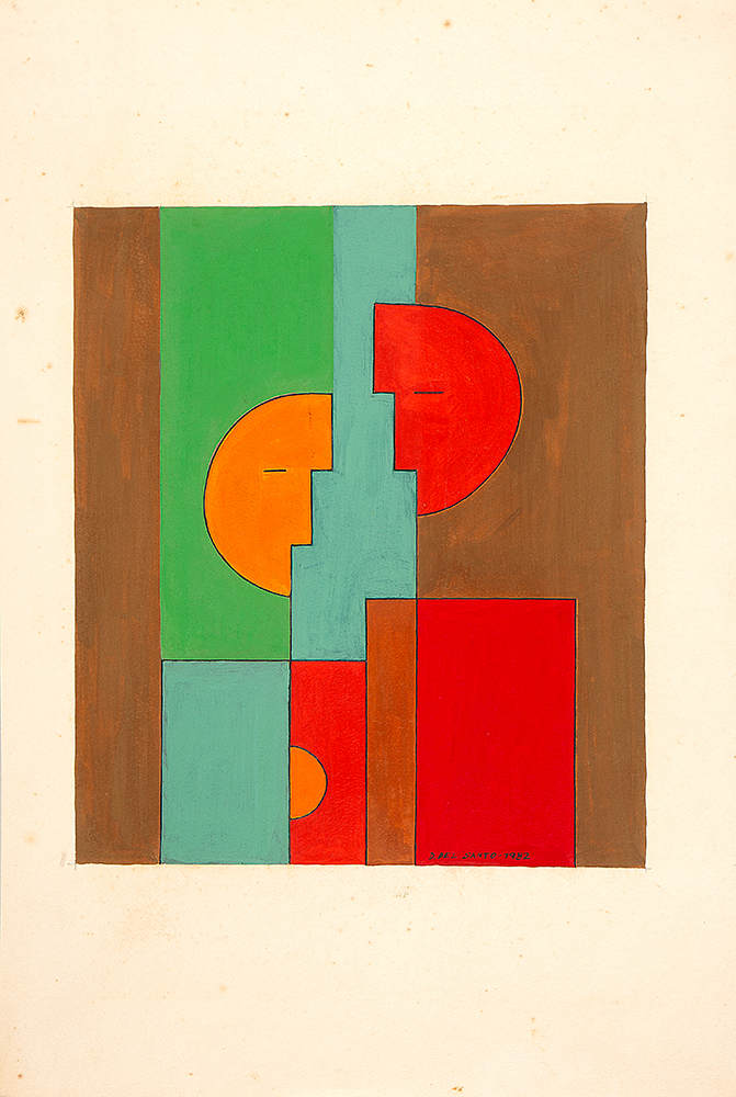 Dionísio Del Santo - Casal. Guache sobre papel, 30x25 cm, 1982, A.C.I.D. Com moldura