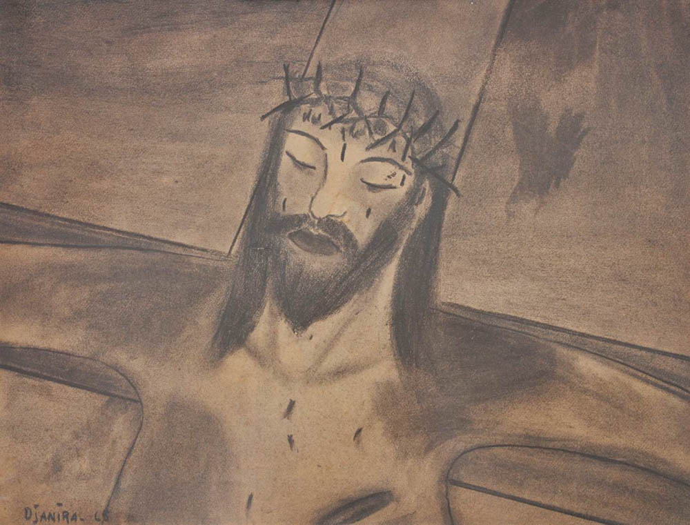 Djanira - Nossa Senhora - Desenho caneta esferográfica - 25x35 - 1967 - Assinada