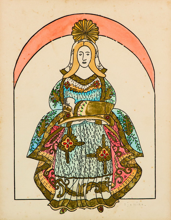 Djanira - Nossa Senhora - Desenho caneta esferográfica - 25x35 - 1967 - Assinada