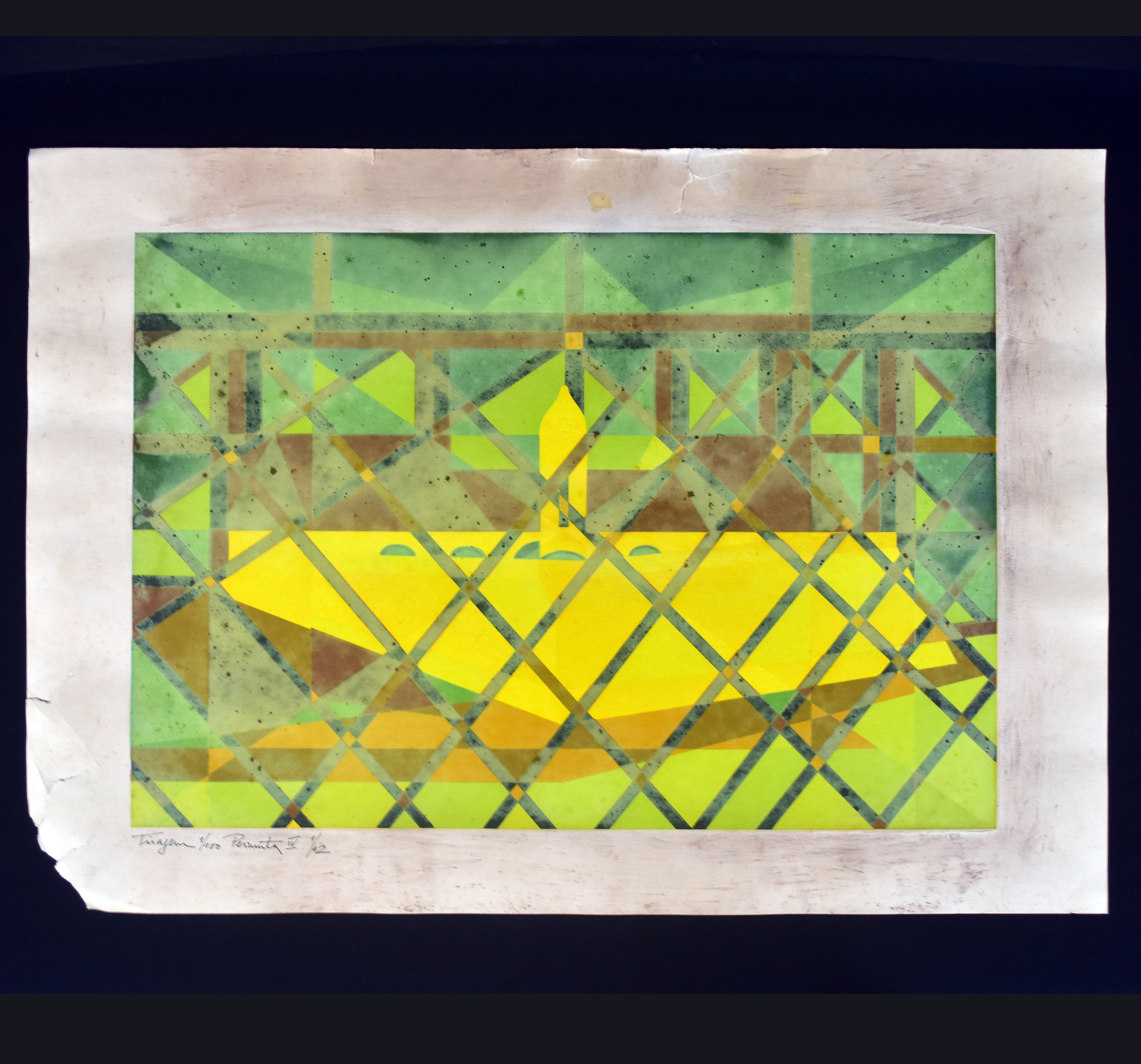 DJANIRA DA MOTTA E SILVA (1914-1979) INSCRIÇÃO EM BICO DE PENA: TIRAGEM: 1/100 - PERMUTA IV (1/12). ASSINADO A PRÓPRIO PUNHO. CONSTA AVARIA NO PAPEL NO C.I.E. MEDIDAS: 49 X 70 CM