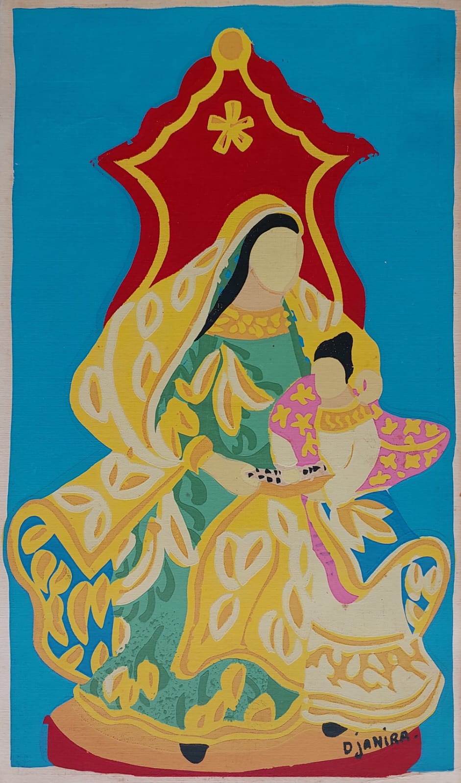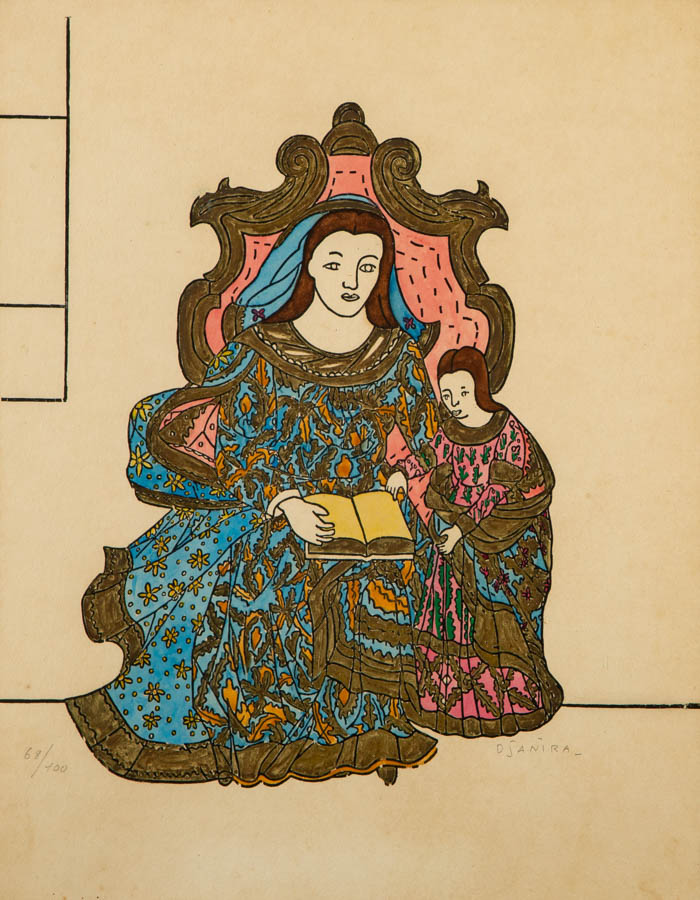 Djanira - Nossa Senhora - Desenho caneta esferográfica - 25x35 - 1967 - Assinada