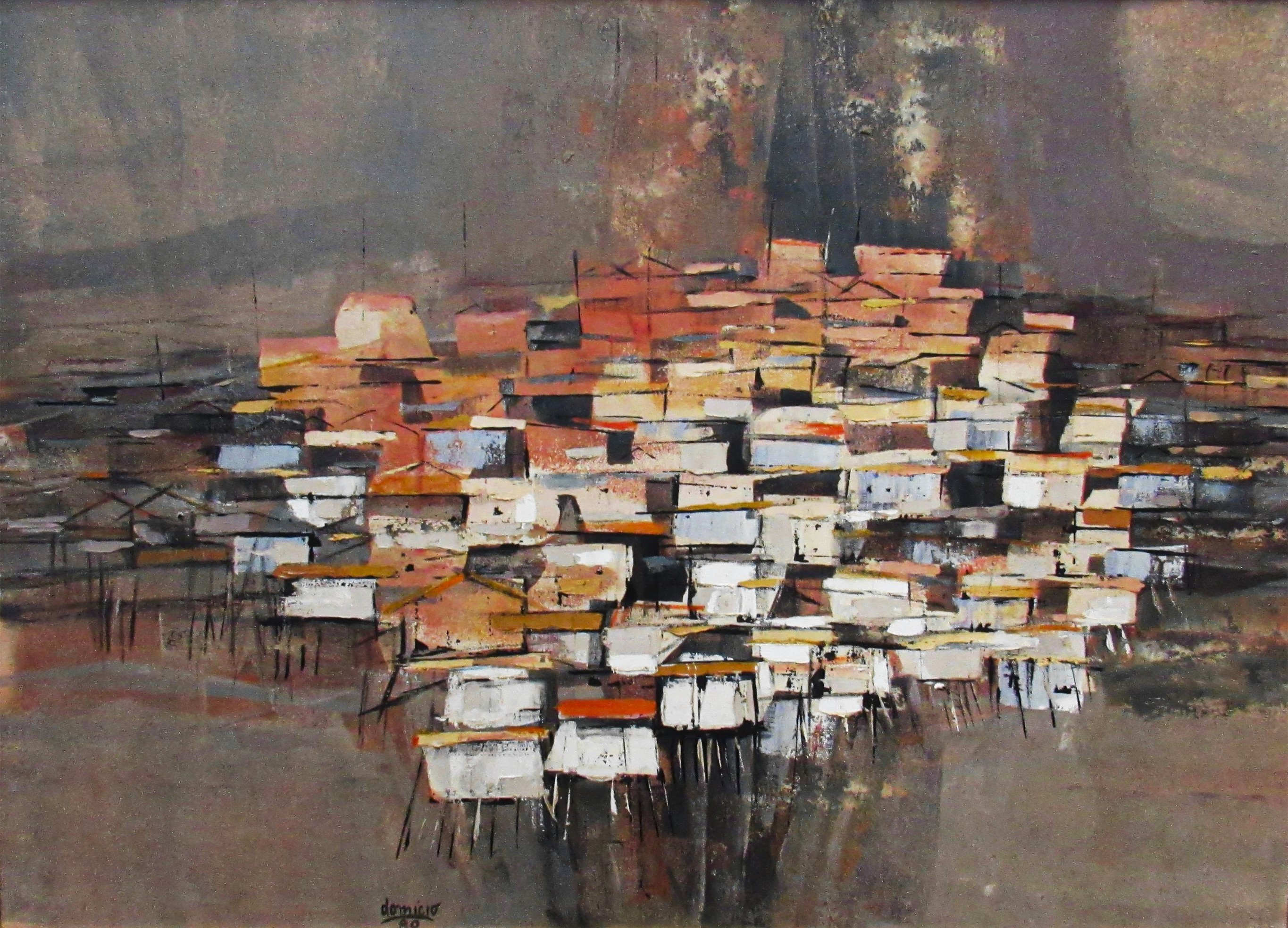 Domício Pedroso (Curitiba PR 1930). Pintor, gravador. Inicia seus estudos no ateliê de Guido Viaro (1897 - 1971), em Curitiba, por volta de 1948 e forma-se pela Escola de Belas Artes do Paraná em 1952. Faz sua primeira exposição individual em 1958, na Biblioteca Pública do Paraná. Viaja para Paris entre 1959 e 1962, quando desenvolve estudos no campo da comunição visual e estagia na Radiodifusion Television Française e no Centro de Informações da Unesco, obtendo o diploma da École Normale Supérieure de Saint Cloud, como especialista em técnicas audiovisuais. Retorna ao Brasil em 1962 e organiza o Centro Audiovisual da Secretaria de Educação e Cultura para o Governo do Estado do Paraná. Em 1974, vence o concurso de cartaz para o Teatro Guaíra em Curitiba. Na década de 1980, coordena a Fundação Nacional de Arte - Funarte para a região Sul do país, permanecendo no cargo de 1981 a 1990.