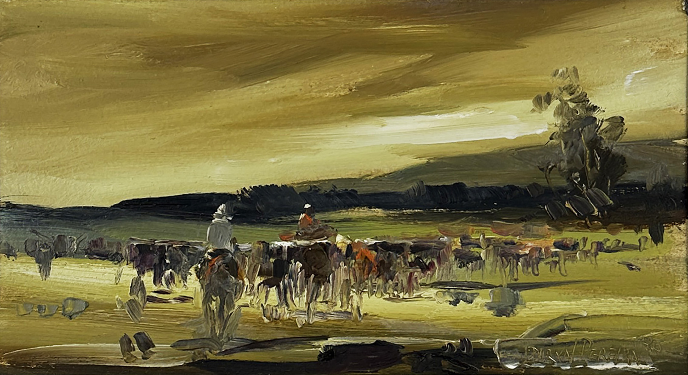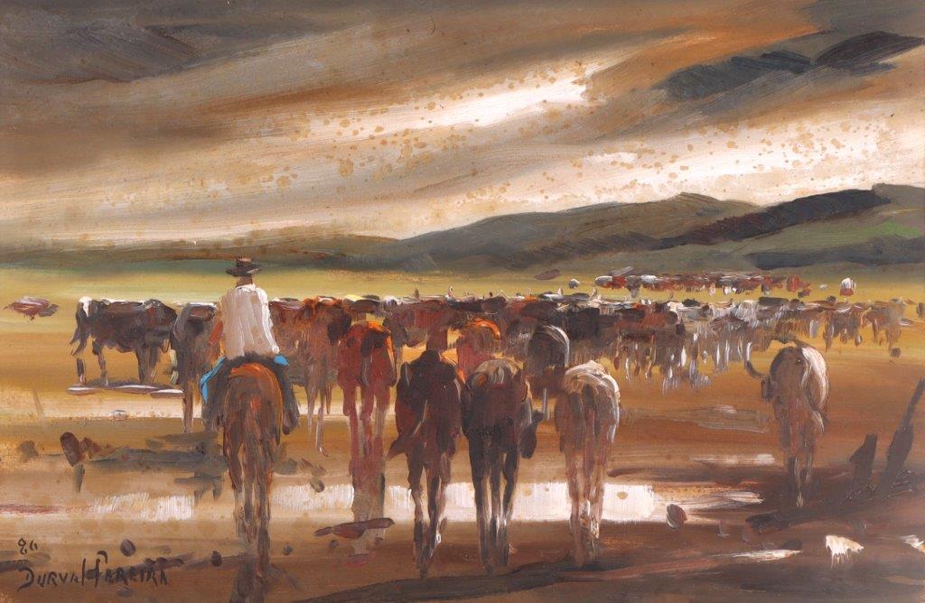 Durval Pereira - Paisagem campestre. Óleo sobre tela, 40x60 cm, 1976, A.C.I.D. Com moldura
