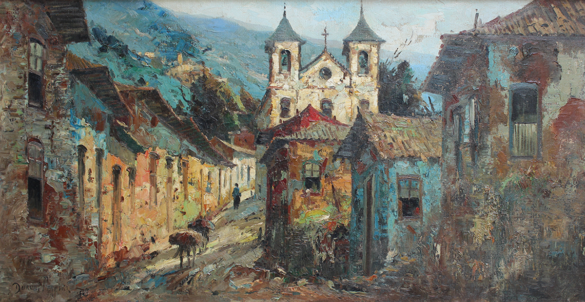 DURVAL PEREIRA, Casario - óleo sobre tela - 70x100 cm - Ass. inf. dir.
