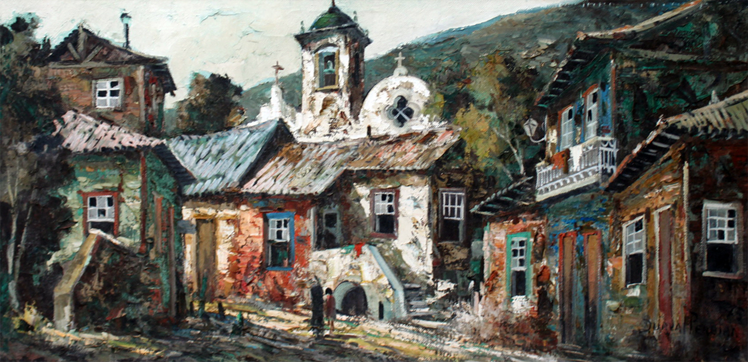 DURVAL PEREIRA, Casario - óleo sobre tela - 70x100 cm - Ass. inf. dir.