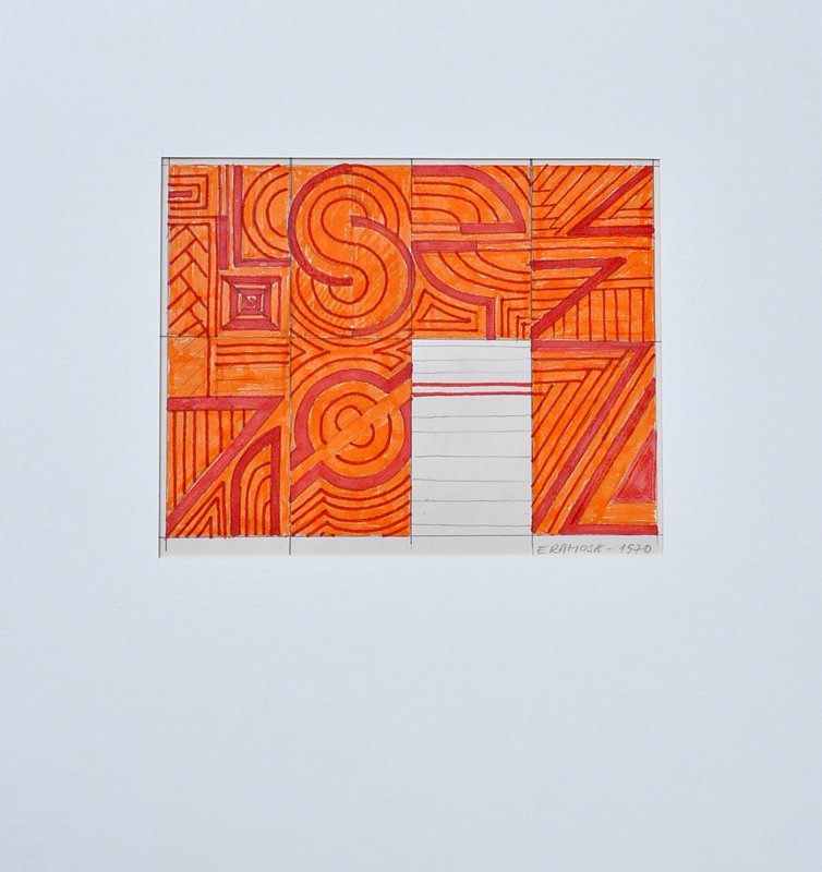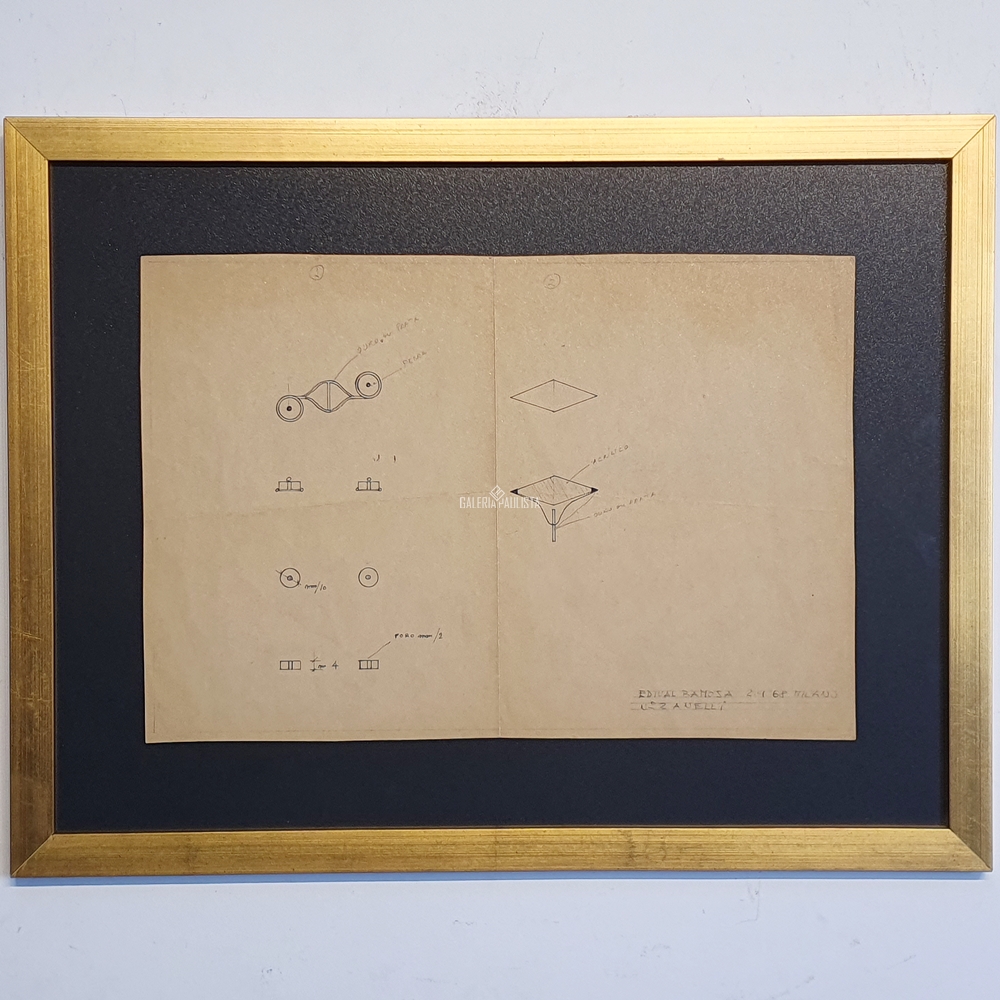 EDIVAL RAMOSA "Anelli 2 - 1968 - Croqui Original-Estudos de Jóias" Desenho de Croquis para Jóias -Med 25x36 cm -Datada de 2-9-68 e Localizada (Milano-IT) e titulada Nº2 Anelli  com a Identificação a “Edival Ramosa" no CID. Medida total 38x50 cm com nova moldura em madeira e vidro de proteção.