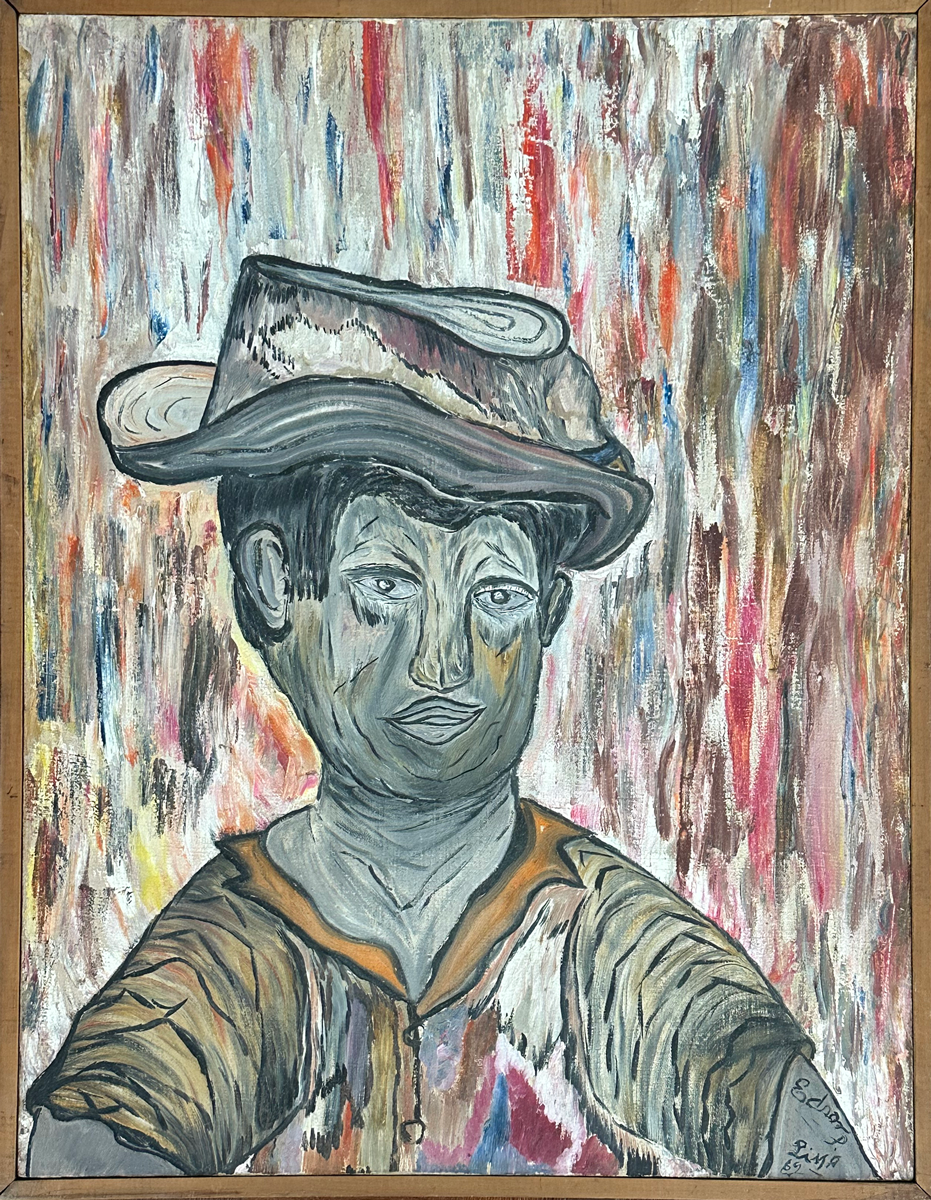 EDSON LIMA, Prof. Mário Schemberg de chapeú - óleo sobre tela - 65x50 cm - - Ass. Inf. Dir.