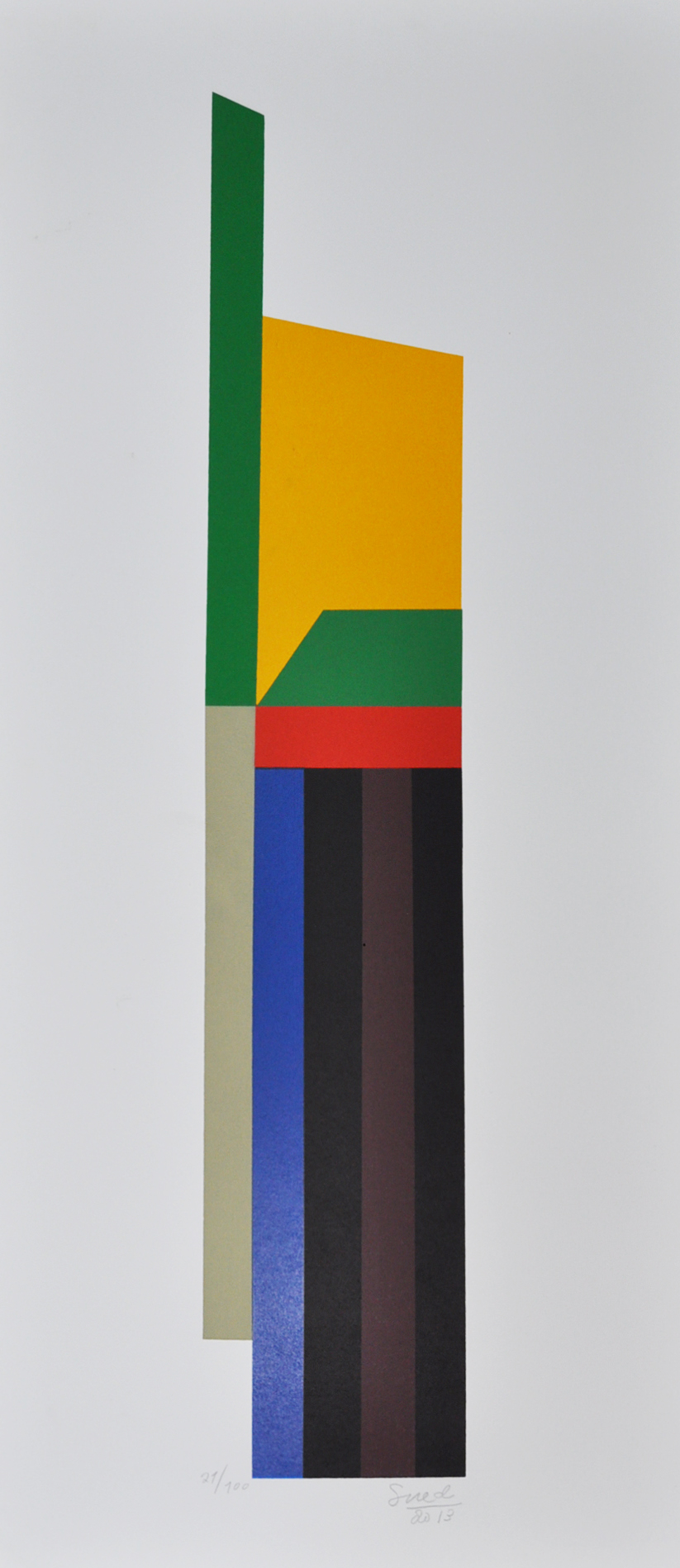 Ele acredita na pintura como fazer intelectual, solitário e meditativo. Não participa ativamente de nenhum movimento, mantendo-se ao largo das disputas travadas entre concretos e neoconcretos nos anos 1950 e também das discussões sobre a nova figuração dos 1960. Sua poética abstrata forma-se pouco a pouco, em diálogo constante e refletido com a tradição da pintura moderna internacional e brasileira. Após um breve período de produção figurativa, Sued conquista já no início dos anos 1970 o domínio seguro da linguagem construtiva a partir da reflexão sobre Piet Mondrian (1872 - 1944) e a Bauhaus. Contudo, trata-se de um construtivismo atualizado e não a aplicação imediata dos postulados de artistas do começo do século XX.