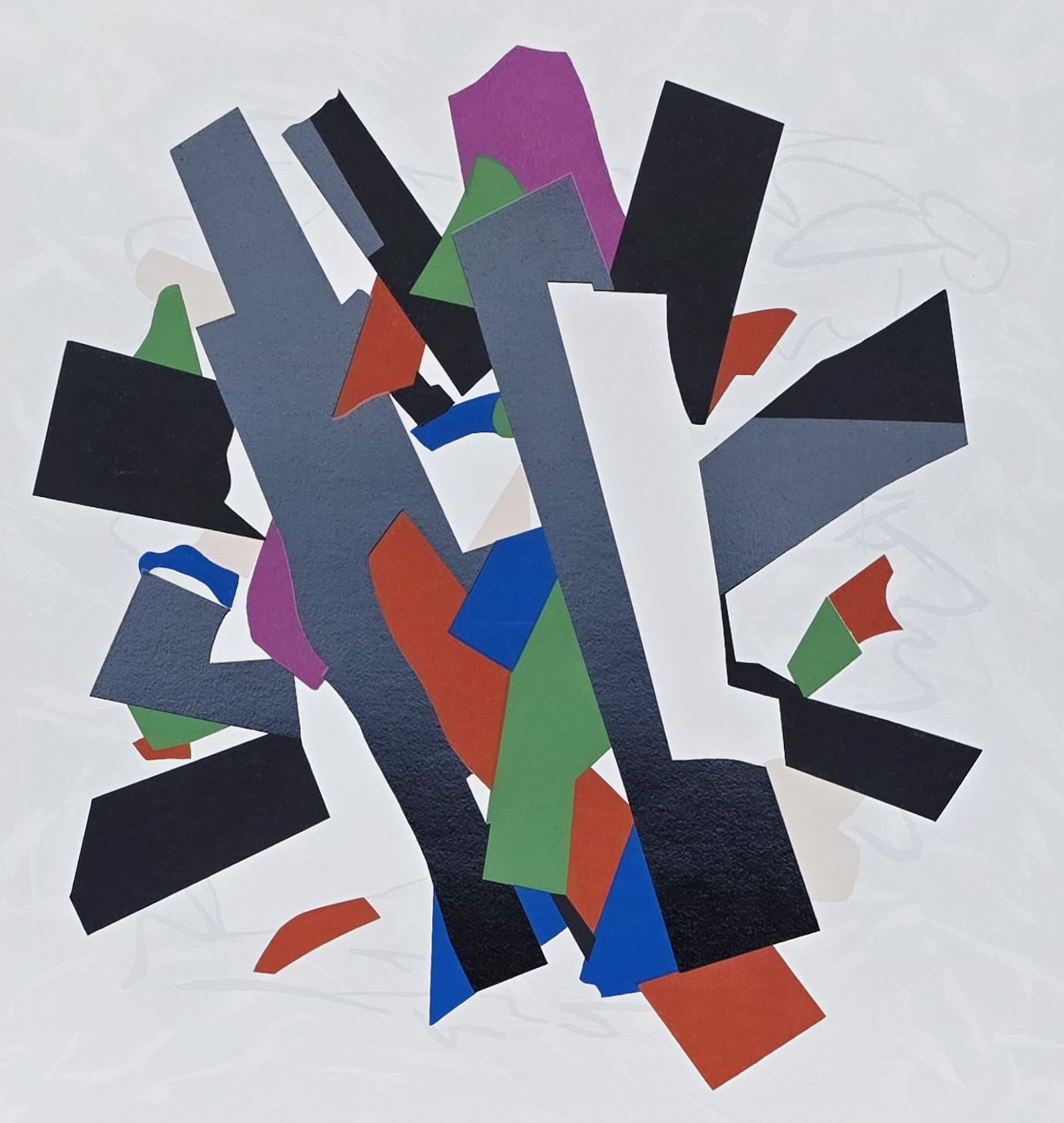 Eduardo Sued - Composição matriz de serigrafia. Acrílica sobre cartão, grafite, pastel, recortes e colagem, 32x24 cm, sem data, A.C.I.D. Com moldura de acrílico e pontos de acidez