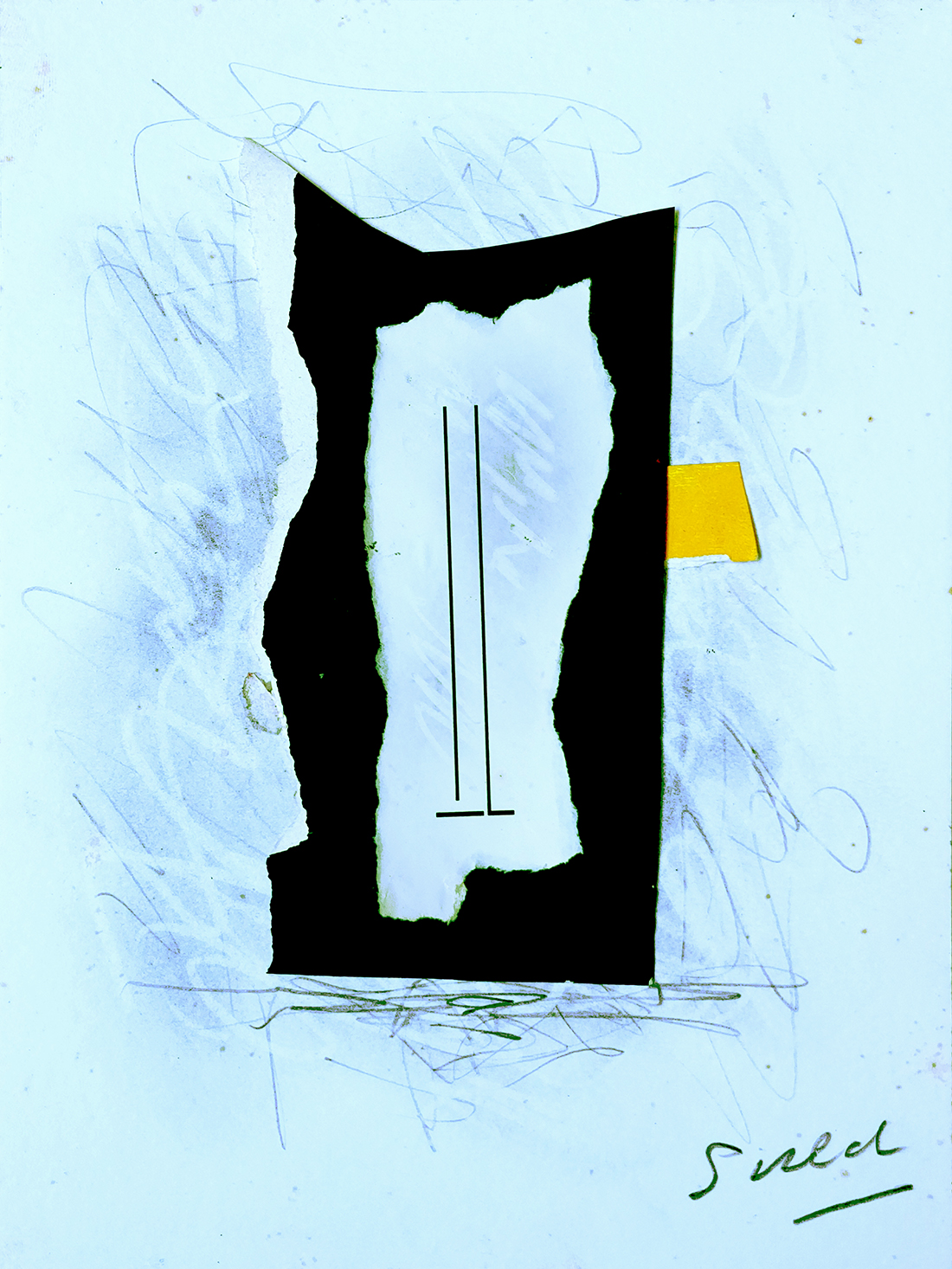 Eduardo Sued - Composição. Acrílica, recortes e colagens sobre cartão, 70x100 cm, 2000, A.C.I.D. Com moldura