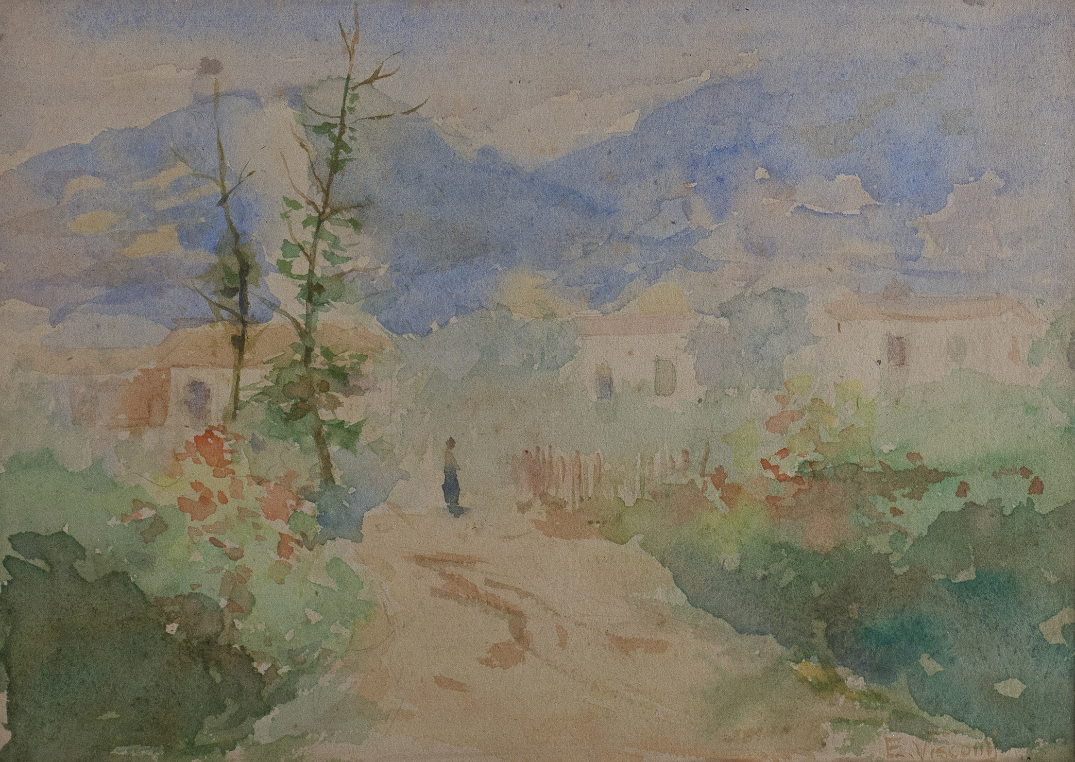 Ao finalizar seus estudos no Brasil, Visconti já estava capacitado tecnicamente diante das questões da pintura então em voga na Escola. Essa maturidade pode ser percebida na paisagem Mamoeiro, com a qual o artista conquista, ainda em 1889, a Medalha de Ouro em Pintura. Nessa obra já se apresentam aspectos que seriam constantes na produção de Visconti, como, por exemplo, o manejo da cor. As qualidades de Visconti seriam confirmadas pela sugestão de compra de duas de suas obras para integrar a nova galeria da Academia, fato marcante se considerada sua então condição de estudante.[6]