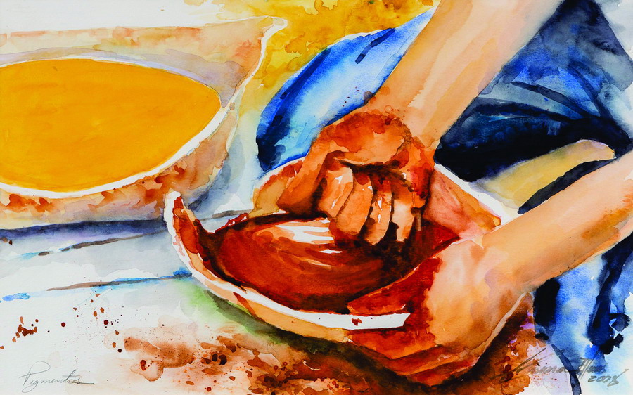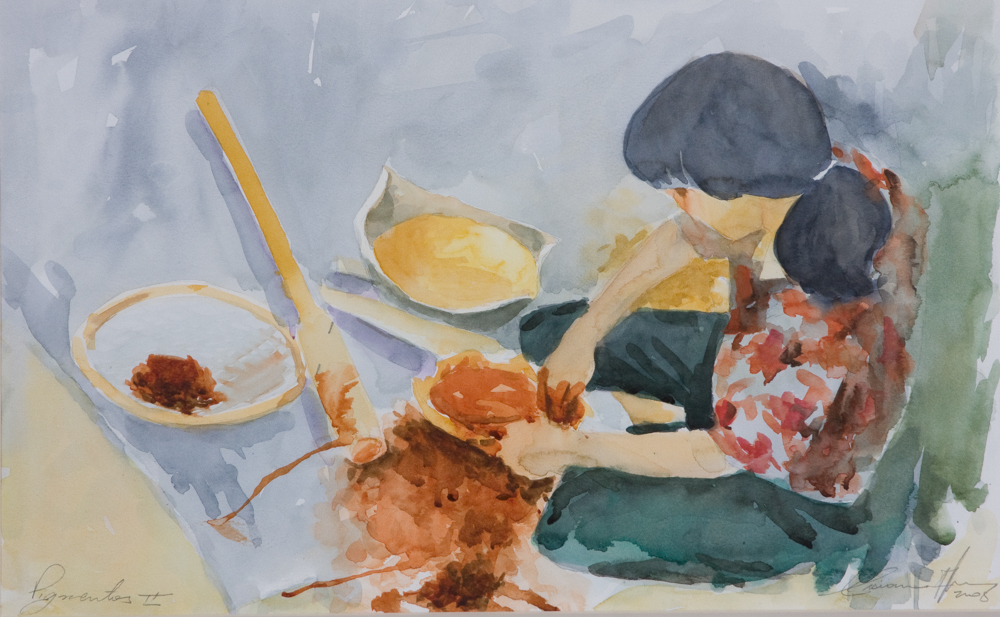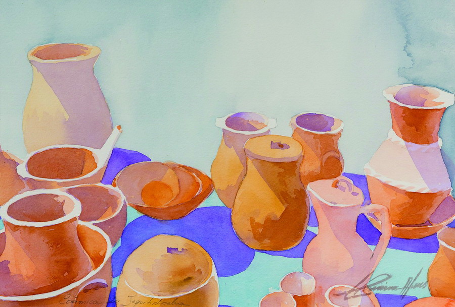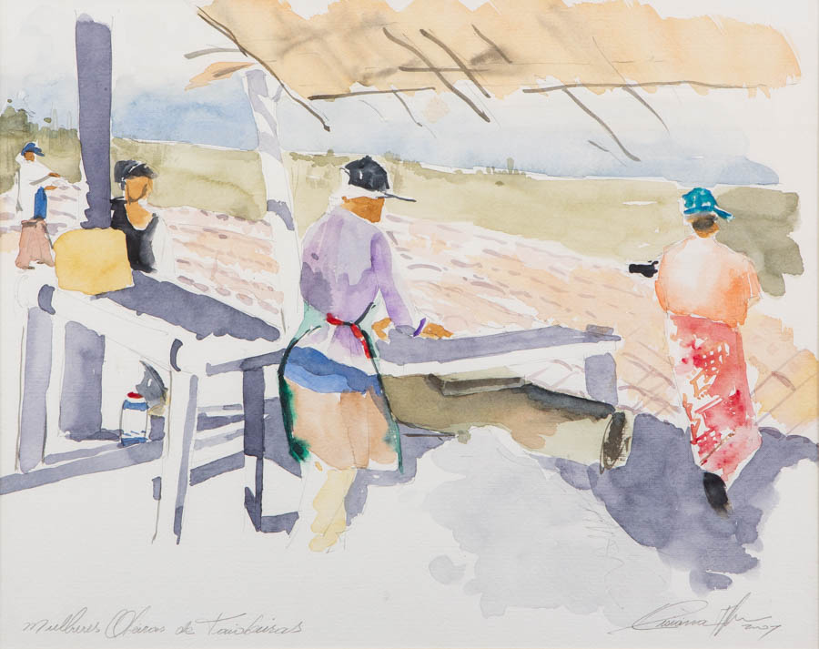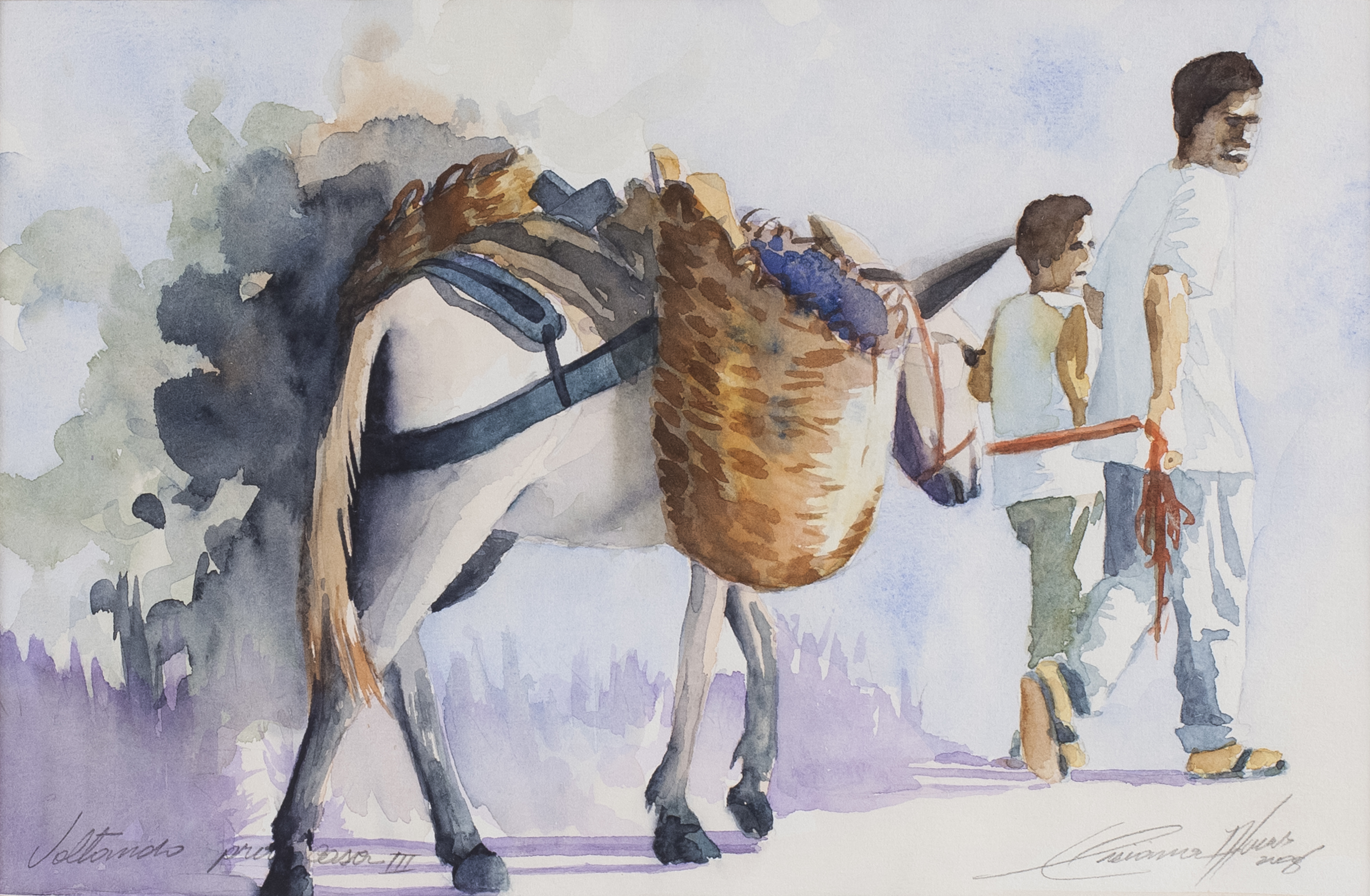 Conhece o grande mestre aquarelista Mario Bhering. Como sua aluna, inicia então a série de aquarelas Identidade, uma reflexão sobre os Vales do Jequitinhonha e Pardo, no Norte de Minas Gerais.