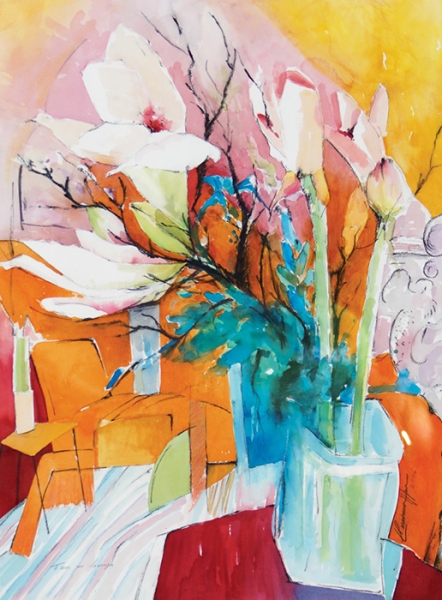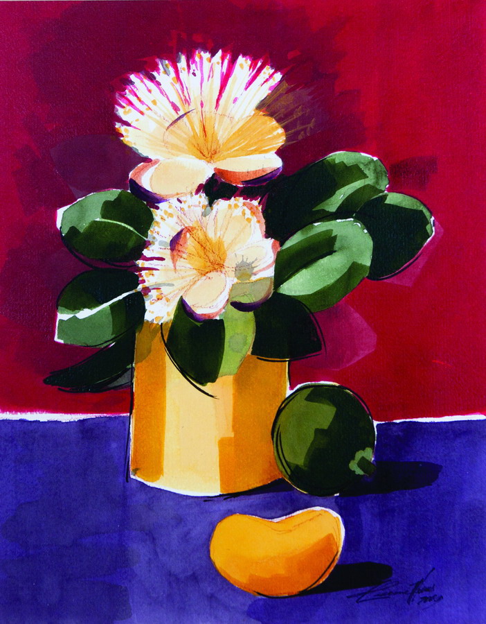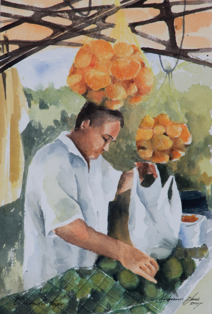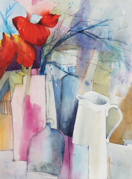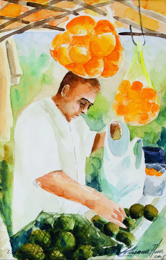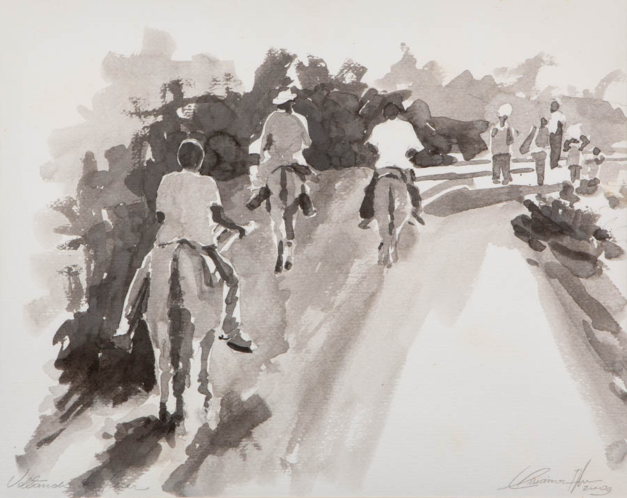 Conhece o grande mestre aquarelista Mario Bhering. Como sua aluna, inicia então a série de aquarelas Identidade, uma reflexão sobre os Vales do Jequitinhonha e Pardo, no Norte de Minas Gerais.