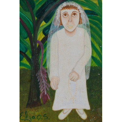 Elza O.s. - “Santa, anjos e flores” - Óleo Sobre Tela - Ass.dat. inf.dir - 2005 - 80 x 65 cm.