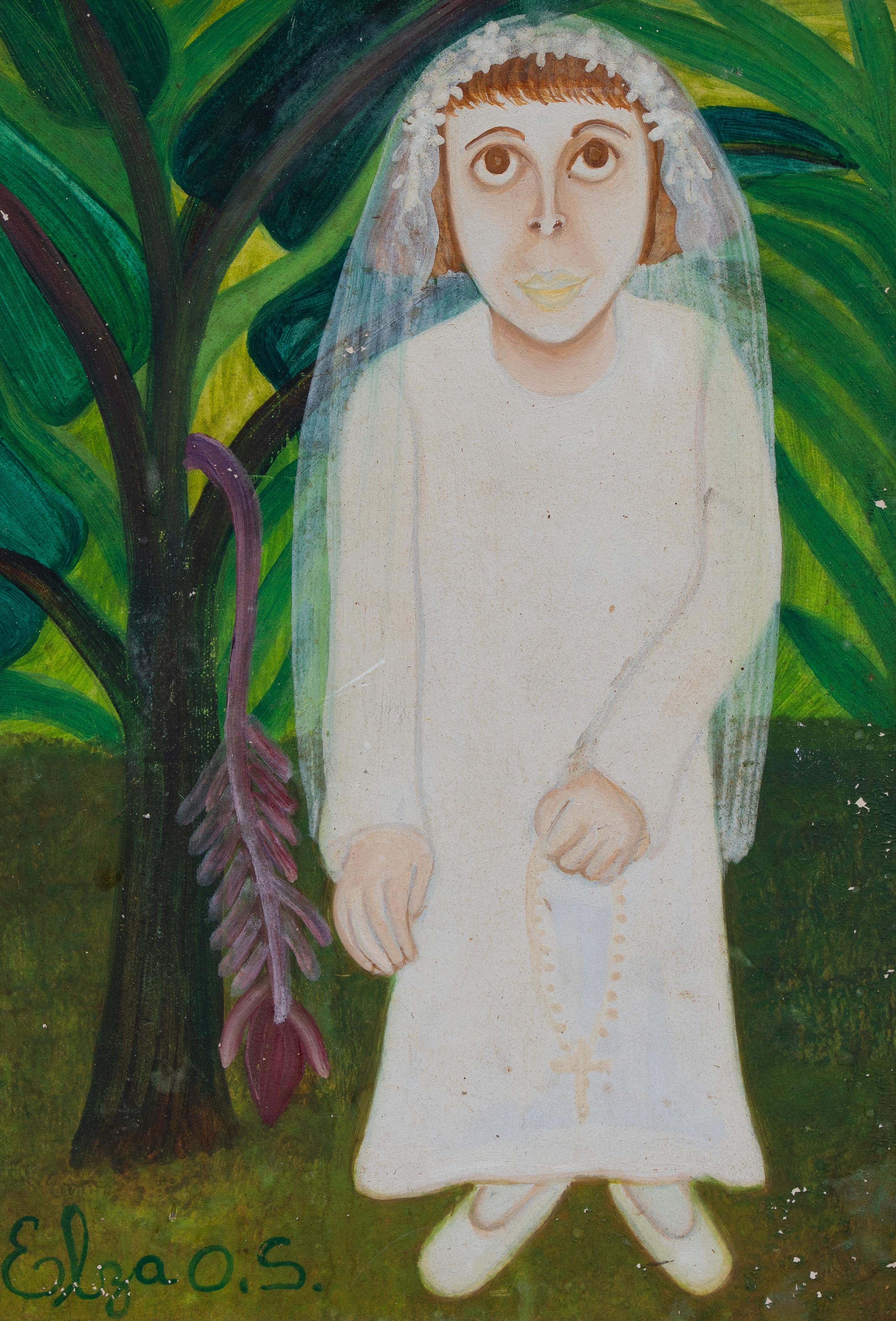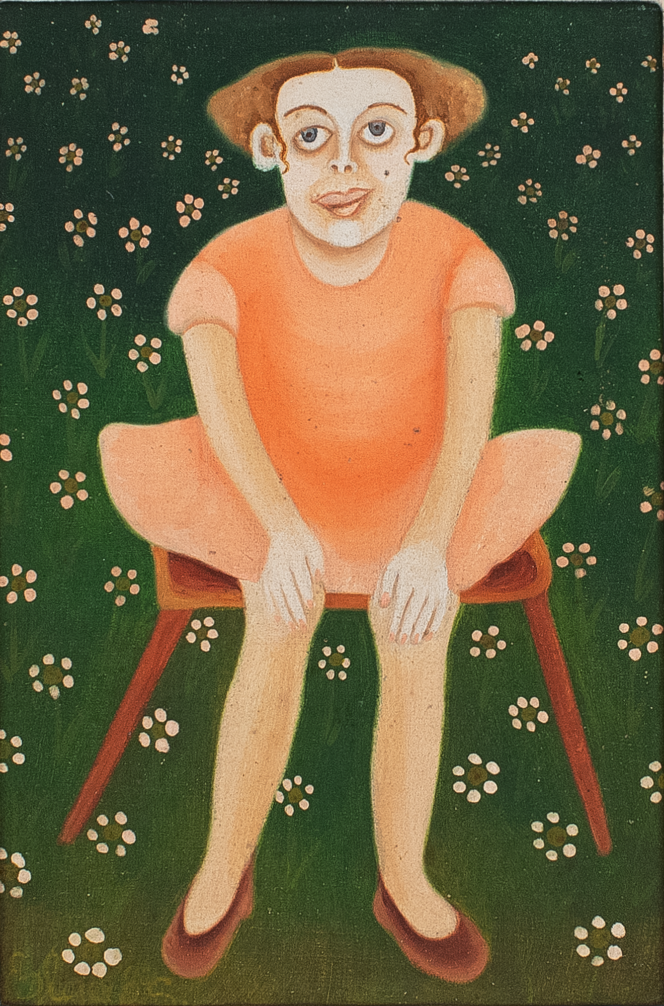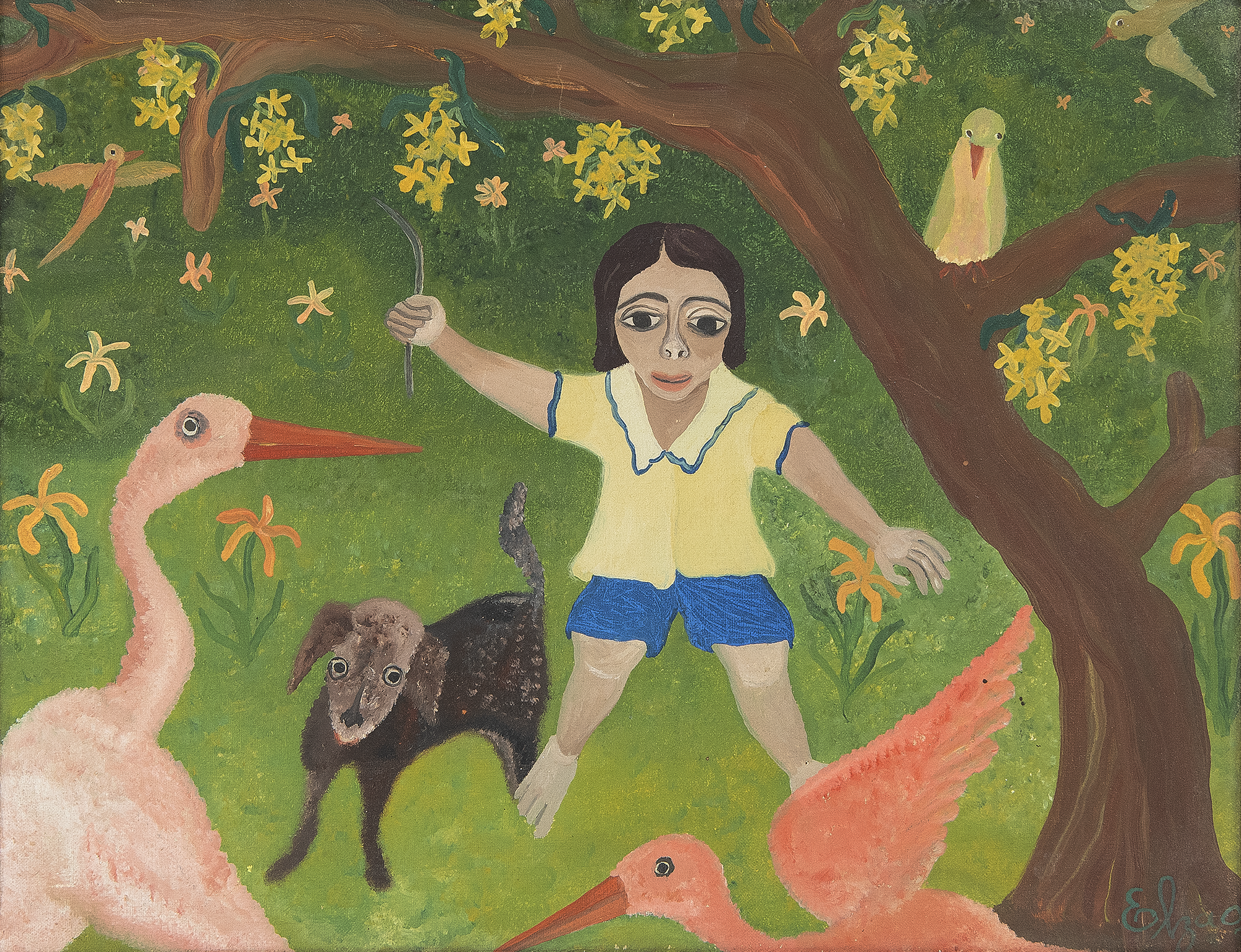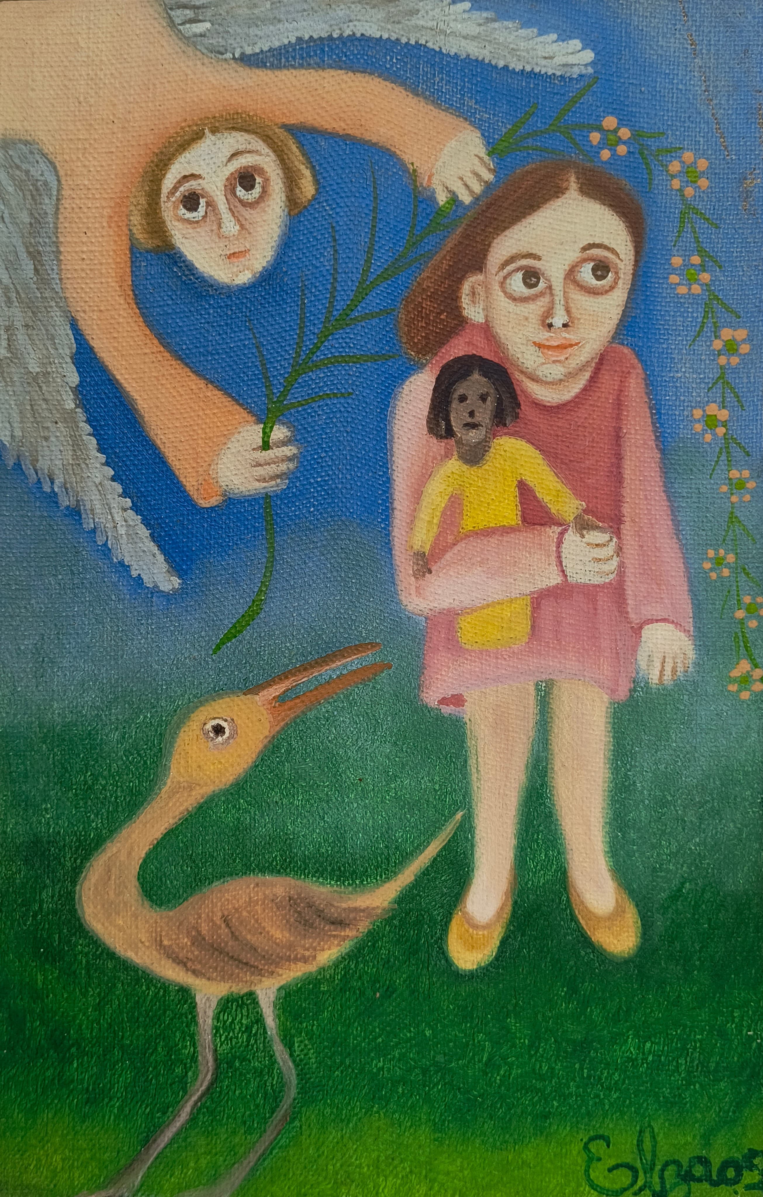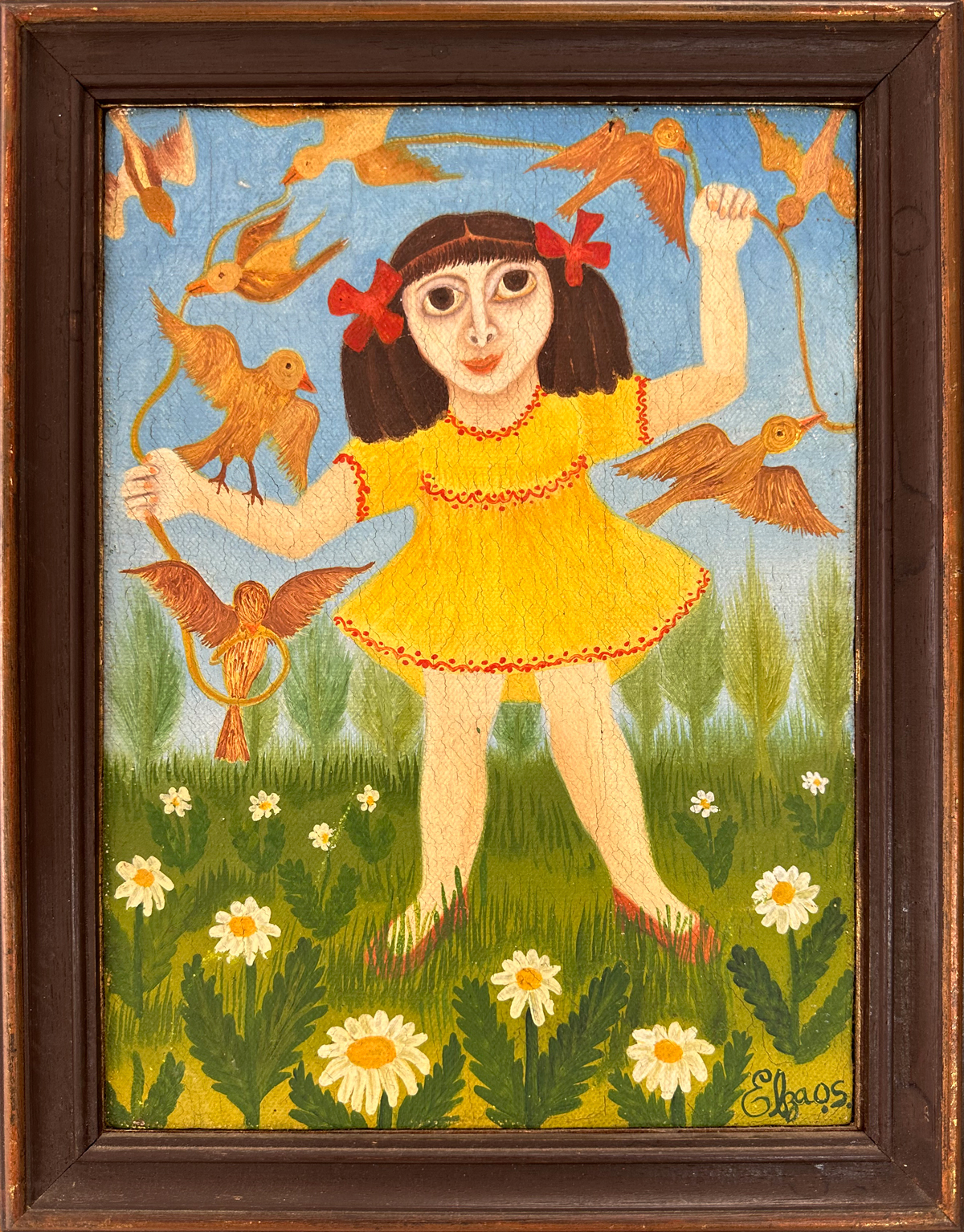 Elza O.S.- Menina no Parque - Óleo sobre tela, colada em placa, assinado inferior esquerdo.- 30 x 20 cm.