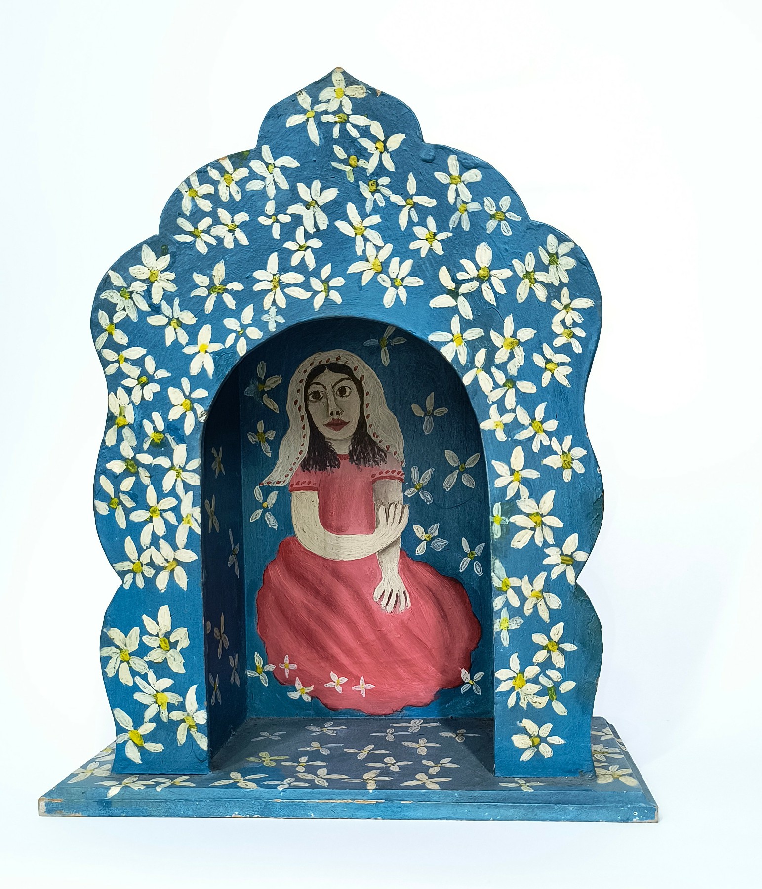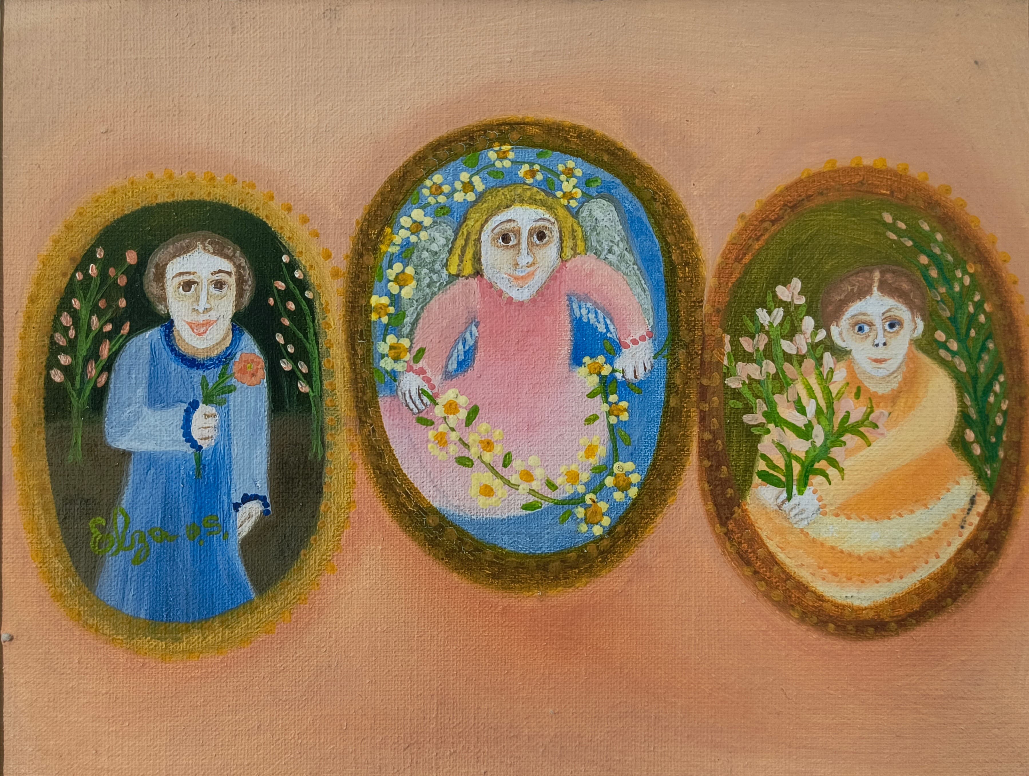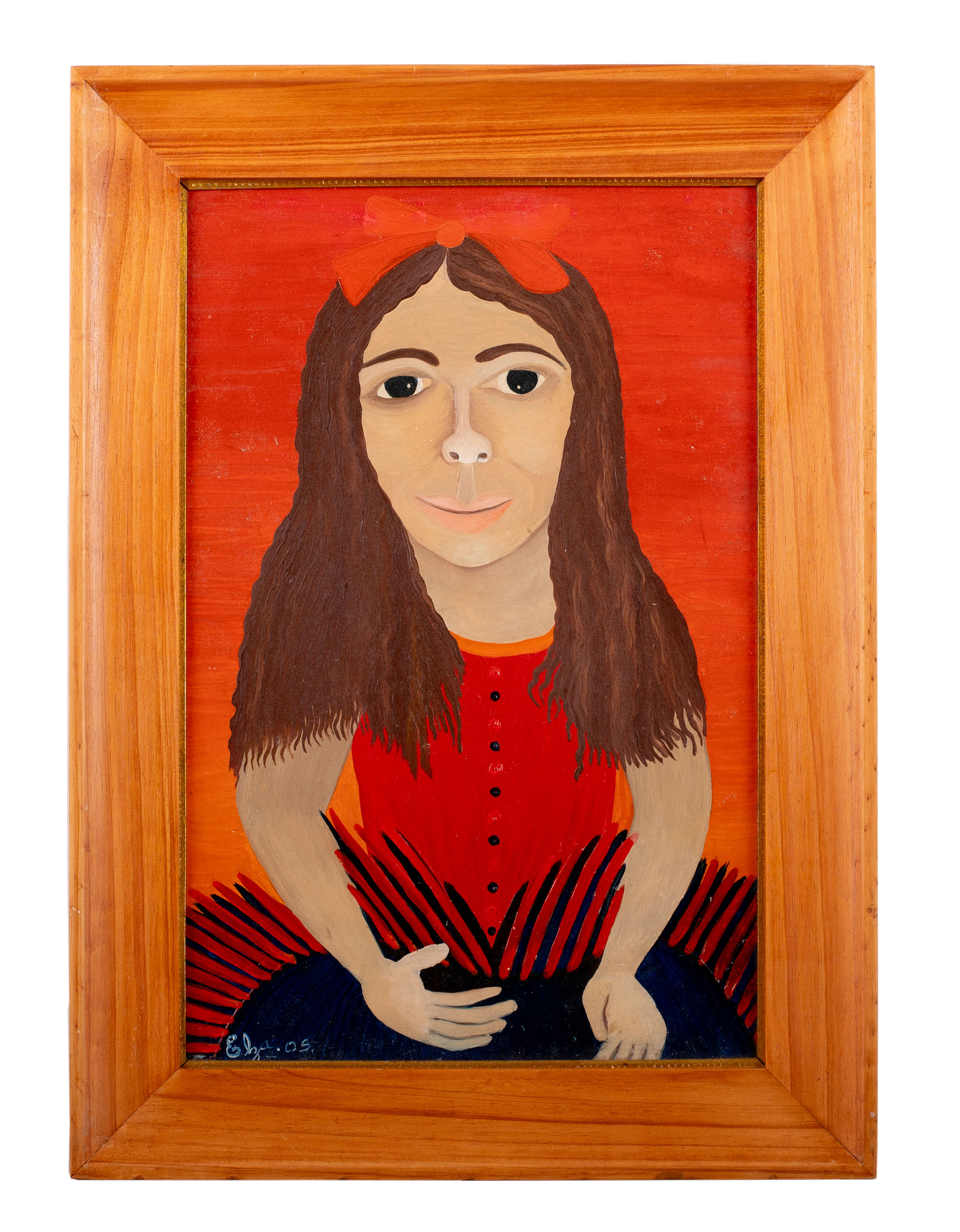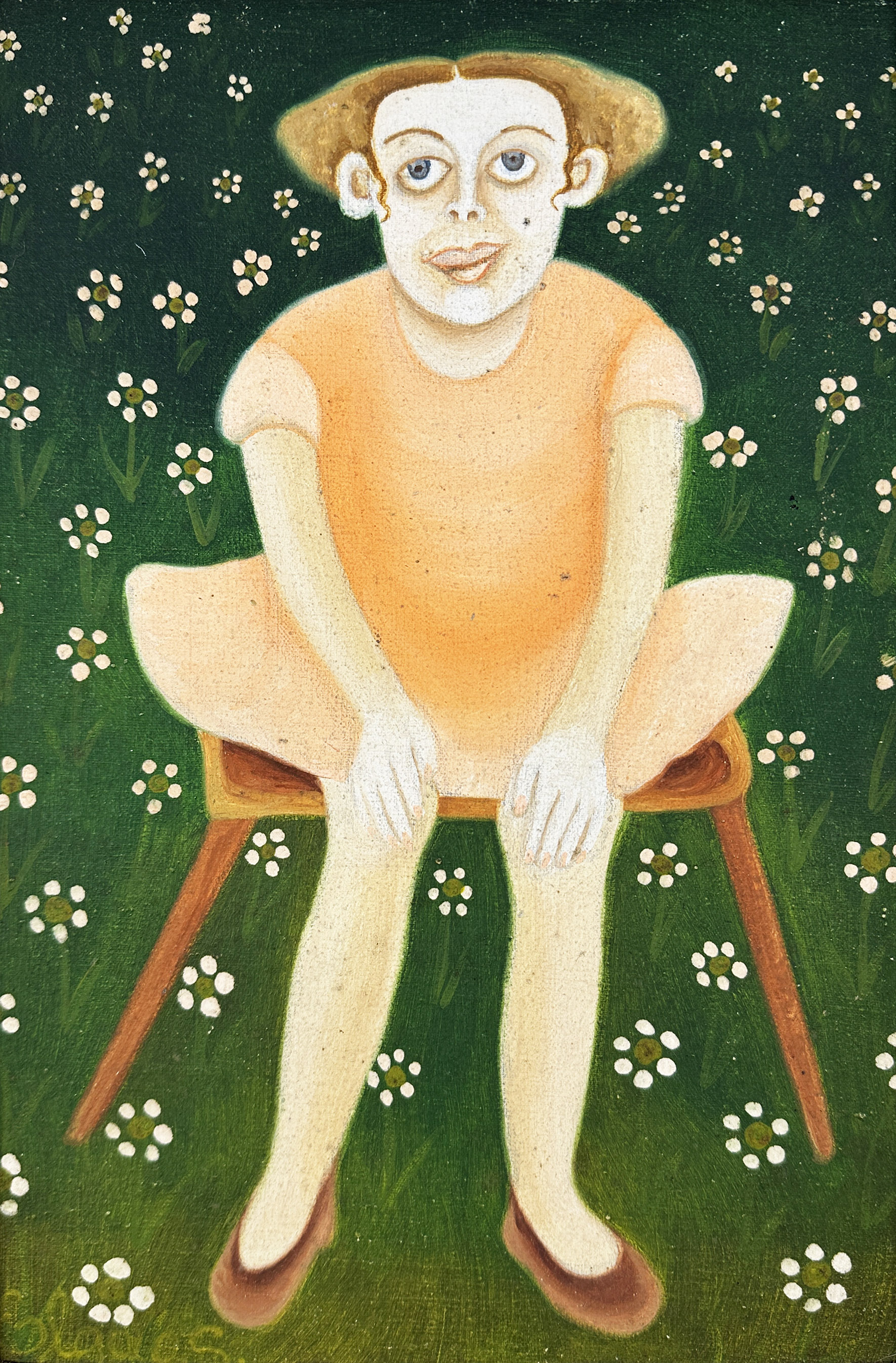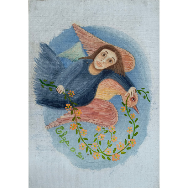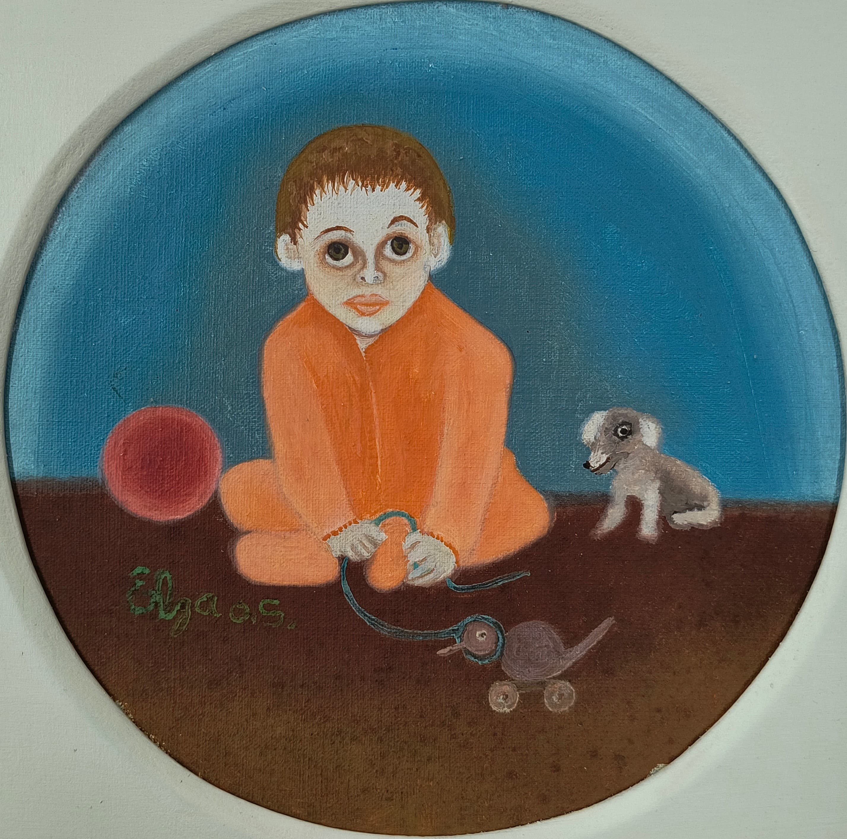 Elza O.S.- Menina no Parque - Óleo sobre tela, colada em placa, assinado inferior esquerdo.- 30 x 20 cm.