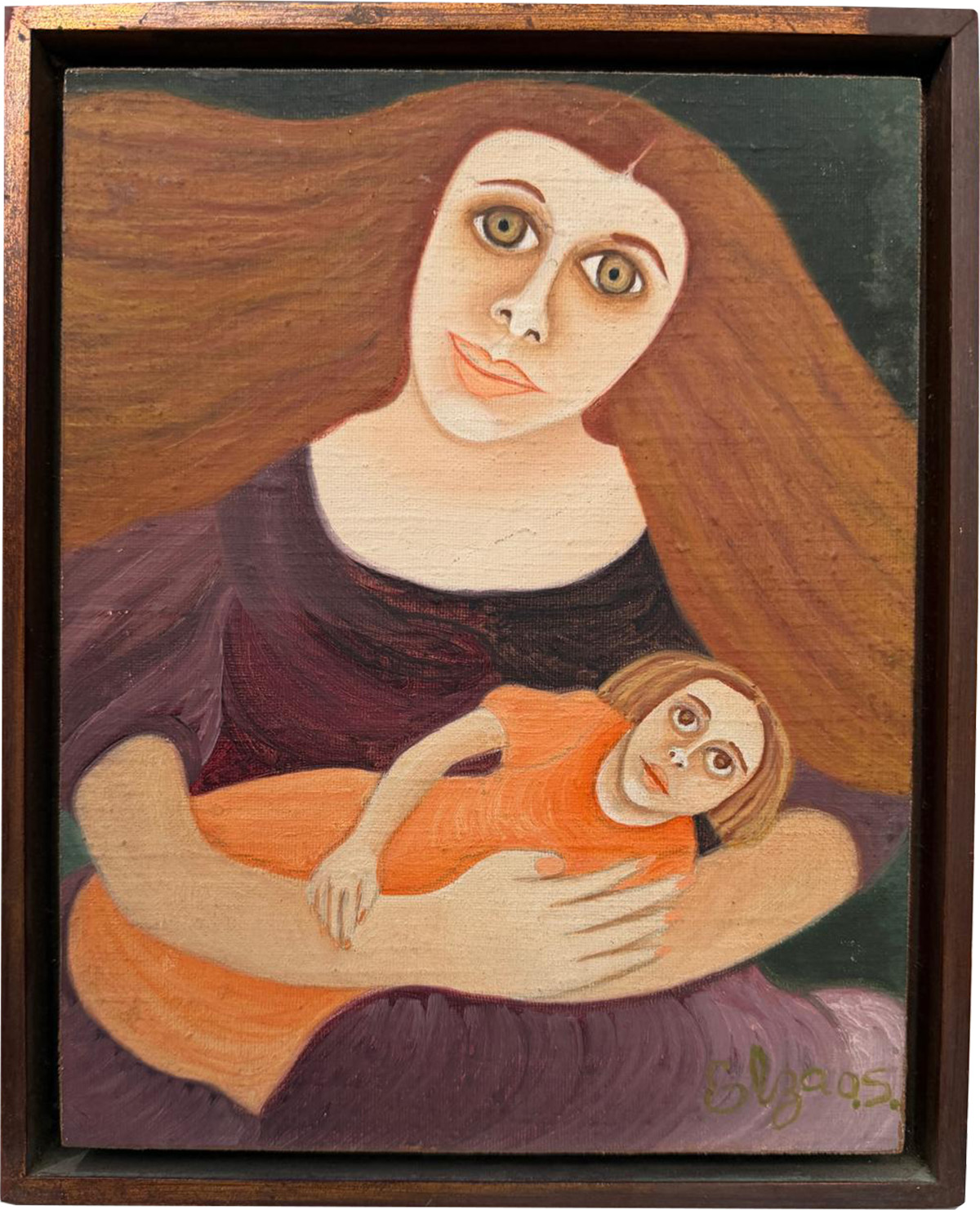ELZA O.S. - "Maternidade" - óleo sobre eucatex - 25 x 20 cm - a.c.i.d.