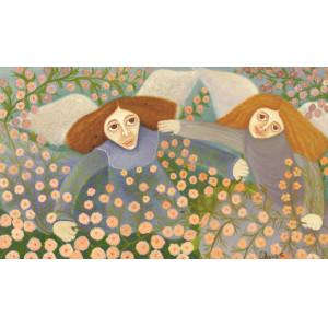 Elza O.S. - Mãe e filha - Óleo sobre eucatex - Assinado canto inferior esquerdo - 27 x 19 cm.