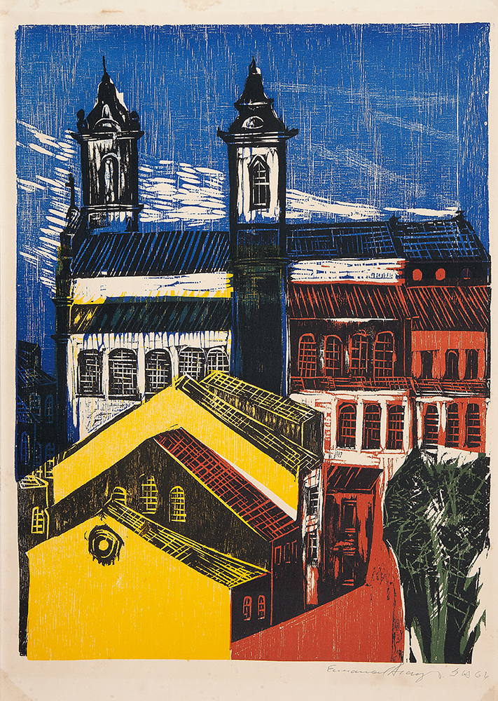 Emanoel Araujo - Sem título - 47-70. Litografia, 66x96 cm, sem data, A.C.I.D. a lápis. Com moldura