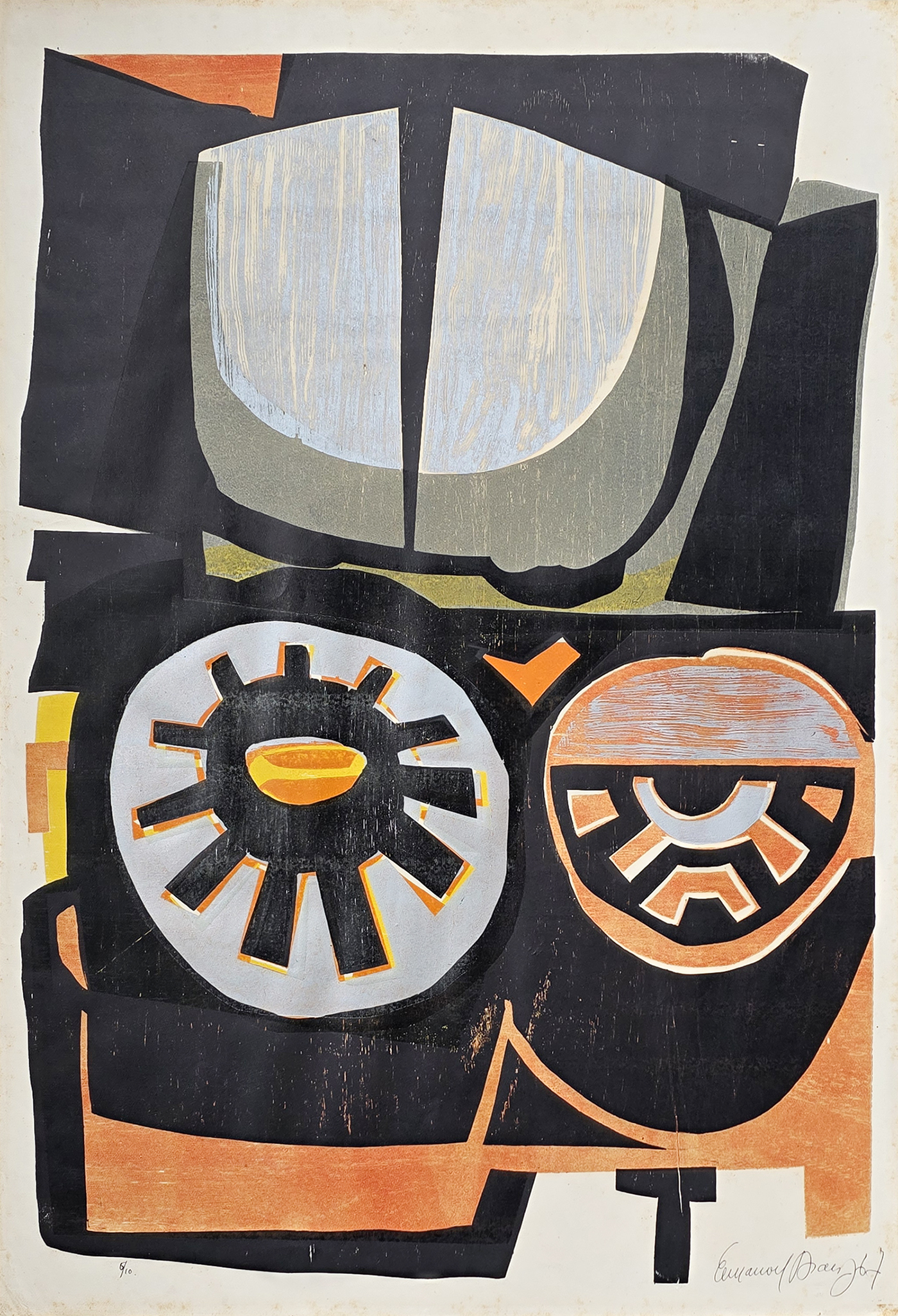 Emanoel Araujo - Sem título - 47-70. Litografia, 66x96 cm, sem data, A.C.I.D. a lápis. Com moldura