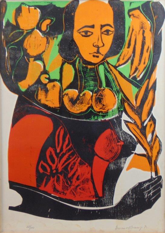 EMANOEL ARAÚJO - Xilogravura P.A I/II - Assinada e datada 1981 - Medidas 77 x 58 cm
