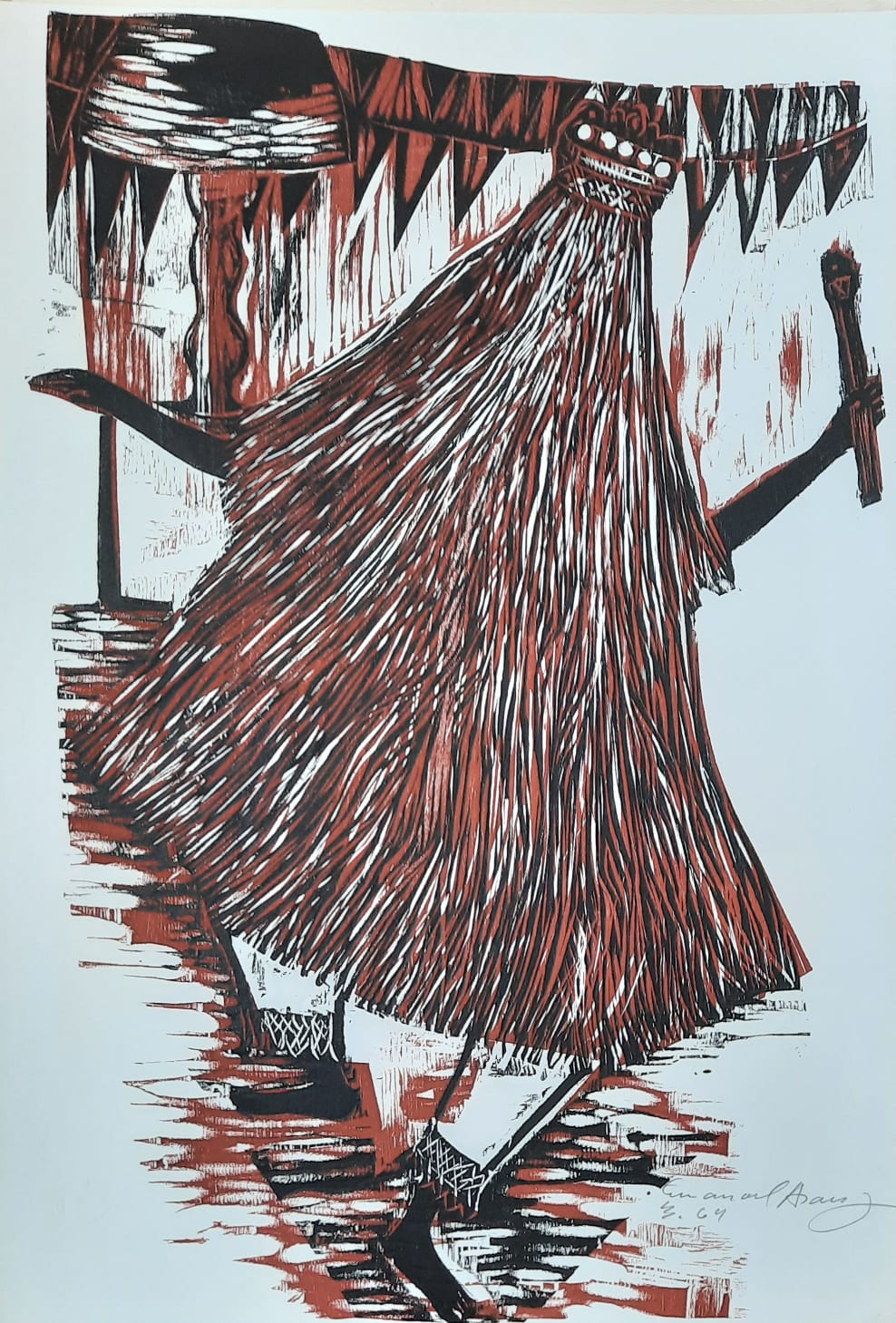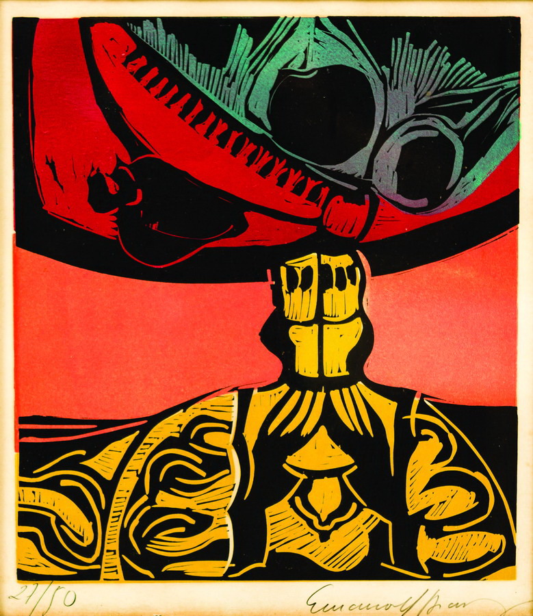 Emanoel Araujo - Sem título, 1977 - Xilogravura, assinada, datada e numerada 4/6. - 117 x 75 cm.