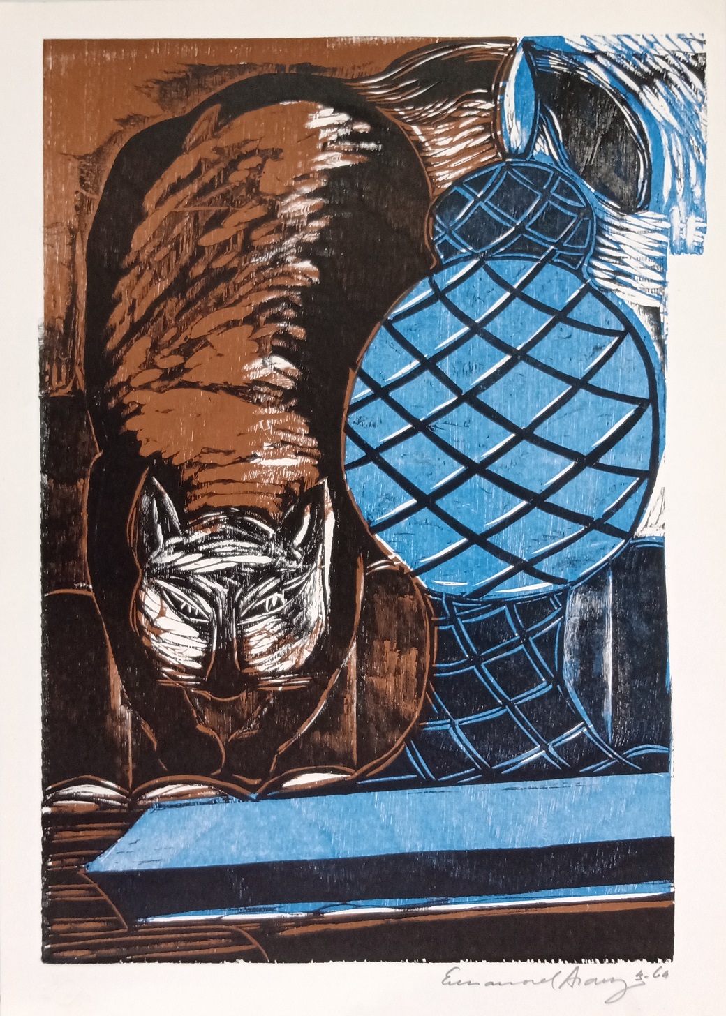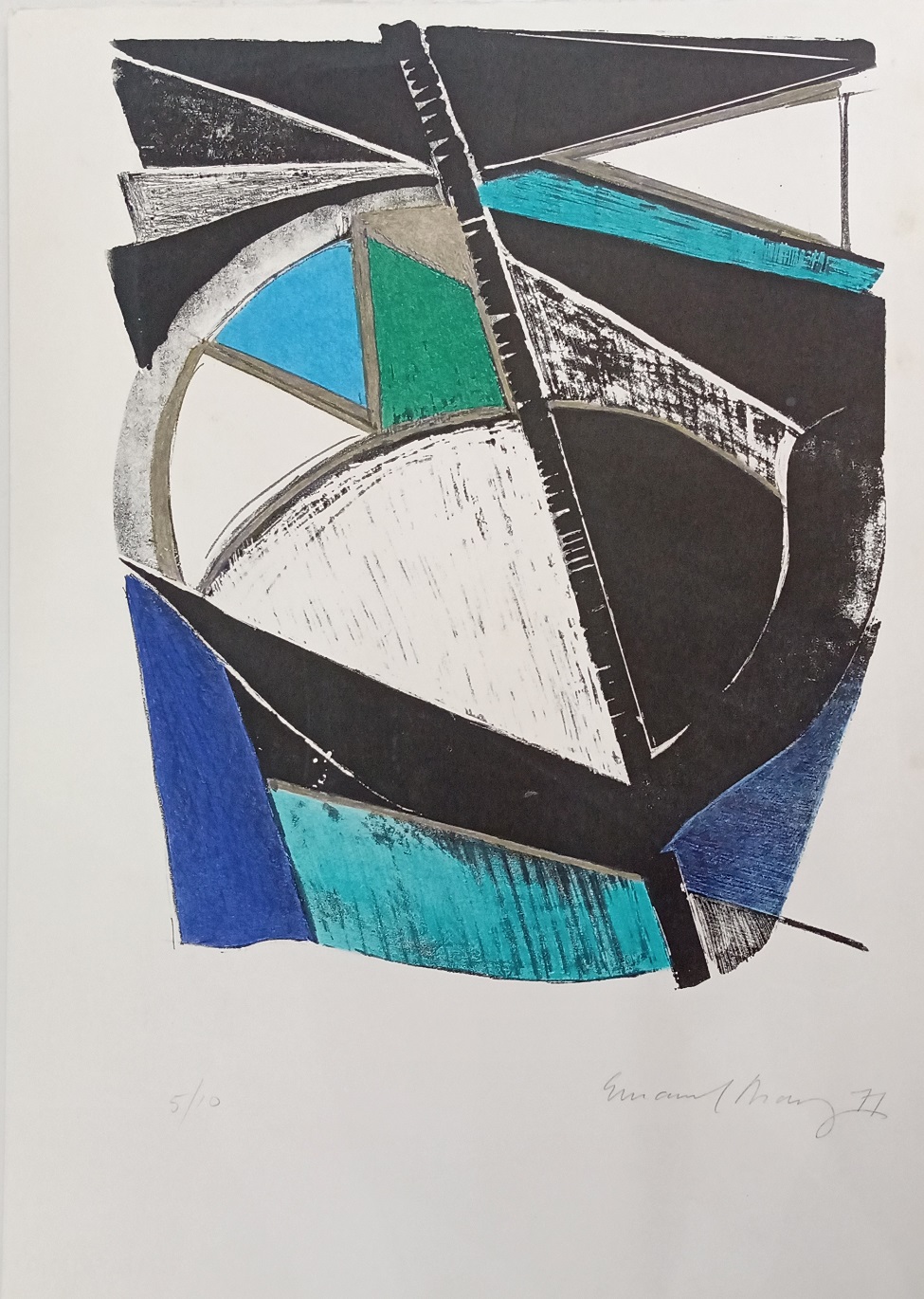 Emanoel Araujo - Sem título - 47-70. Litografia, 66x96 cm, sem data, A.C.I.D. a lápis. Com moldura