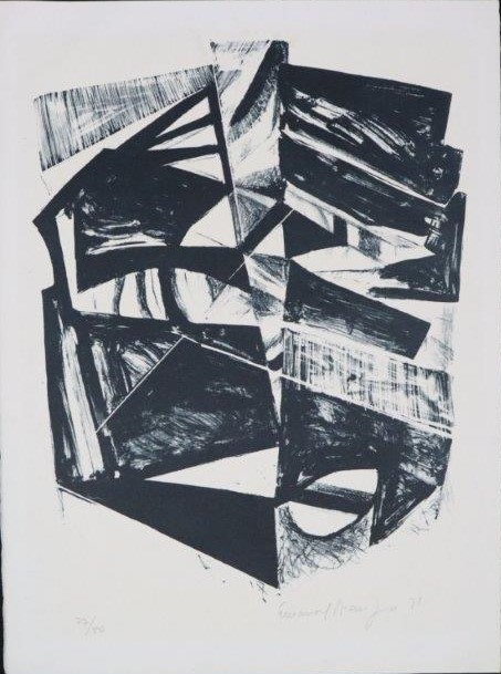 Emanoel Araujo - Sem título - 47-70. Litografia, 66x96 cm, sem data, A.C.I.D. a lápis. Com moldura