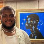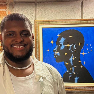 Emerson Rocha, 28 anos, é um artista visual contemporâneo afro-brasileiro natural de São Roque, em São Paulo. Seus trabalhos se concentram na exaltação das experiências e do cotidiano da população negra de seu país, um dos mais racistas do mundo. Com foco na estética única do povo negro brasileiro, tem o uso de um azul bastante específico, obtido através da junção de tinta acrílica e anil africano,  o dourado e o branco como elementos principais em suas composições.
