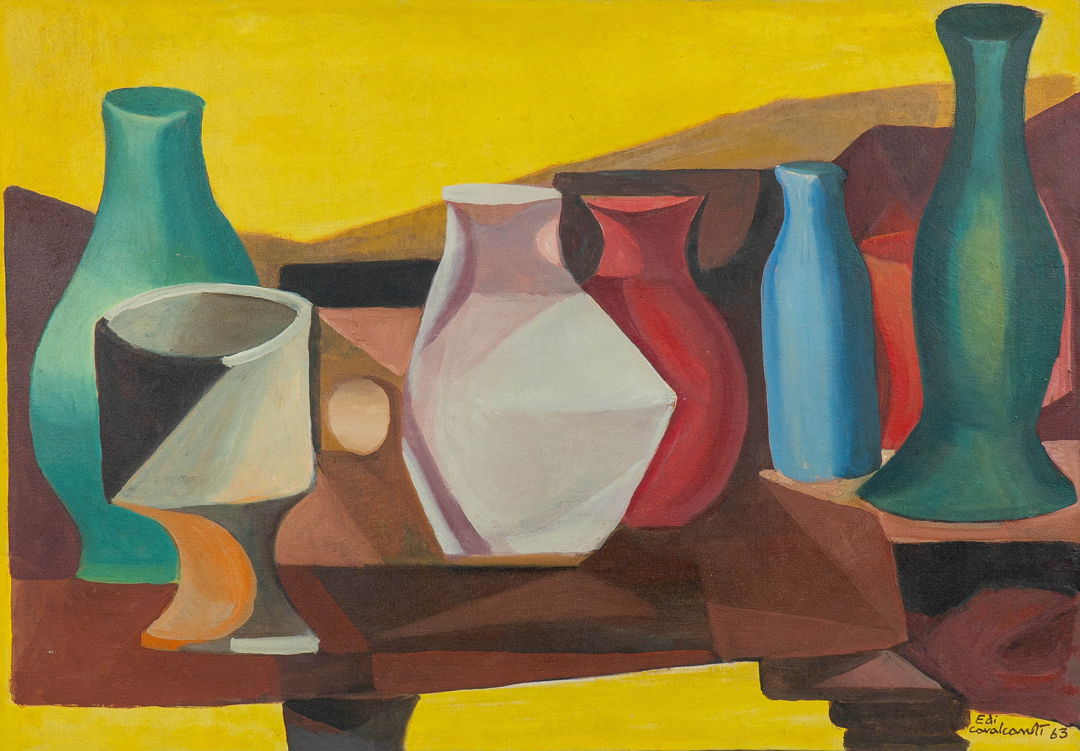 E. DI CAVALCANTI, Composição com Figuras, Técnica Mista sobre Papel, ACID, 29 x 20cm (m.i). Datado 1966
