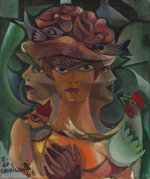 Arte moderna e viagens para o exterior Entre 11 e 18 de fevereiro de 1922, idealizou e organizou a Semana de Arte Moderna no Teatro Municipal de São Paulo, criando, para essa ocasião, as peças promocionais do evento: catálogo e programa. Fez sua primeira viagem à Europa em 1923, permanecendo em Paris até 1925. Frequentou a Academia Ranson. Expôs em diversas cidades: Londres, Berlim, Bruxelas, Amsterdã e Paris. Conheceu Pablo Picasso, Fernand Léger, Matisse, Erik Satie, Jean Cocteau e outros intelectuais franceses. Retornou ao Brasil em 1926 e ingressou no Partido Comunista. Seguiu fazendo ilustrações. Fez nova viagem a Paris e criou os painéis de decoração do Teatro João Caetano no Rio de Janeiro. Os anos 1930 encontram um Di Cavalcanti imerso em dúvidas quanto à sua liberdade como homem e artista e quanto a dogmas partidários. Iniciou suas participações em exposições coletivas e salões nacionais e internacionais, como a International Art Center em Nova Iorque. Em 1932, fundou, em São Paulo, com Flávio de Carvalho, Antonio Gomide e Carlos Prado, o Clube dos Artistas Modernos. Sofreu sua primeira prisão em 1932 durante a Revolução Constitucionalista de 1932. Casou-se com a pintora Noêmia Mourão. Publicou o álbum "A Realidade Brasileira", série de doze desenhos satirizando o militarismo da época. Em Paris, em 1938, trabalhou na rádio "Diffusion Française" nas emissões "Paris Mondial". Viajou ao Recife e Lisboa, onde expôs no salão "O Século"; ao retornar, foi preso novamente no Rio de Janeiro. Em 1936, escondeu-se na Ilha de Paquetá e foi preso com Noêmia. Libertado por amigos, seguiu para Paris, lá permanecendo até 1940. Em 1937, recebeu medalha de ouro com a decoração do Pavilhão da Companhia Franco-Brasileira, na Exposição de Arte Técnica, em Paris. Com a iminência da Segunda Guerra, deixou Paris e retornou ao Brasil, fixando-se em São Paulo. Um lote de mais de quarenta obras despachadas da Europa não chegaram ao destino, extraviando-se.