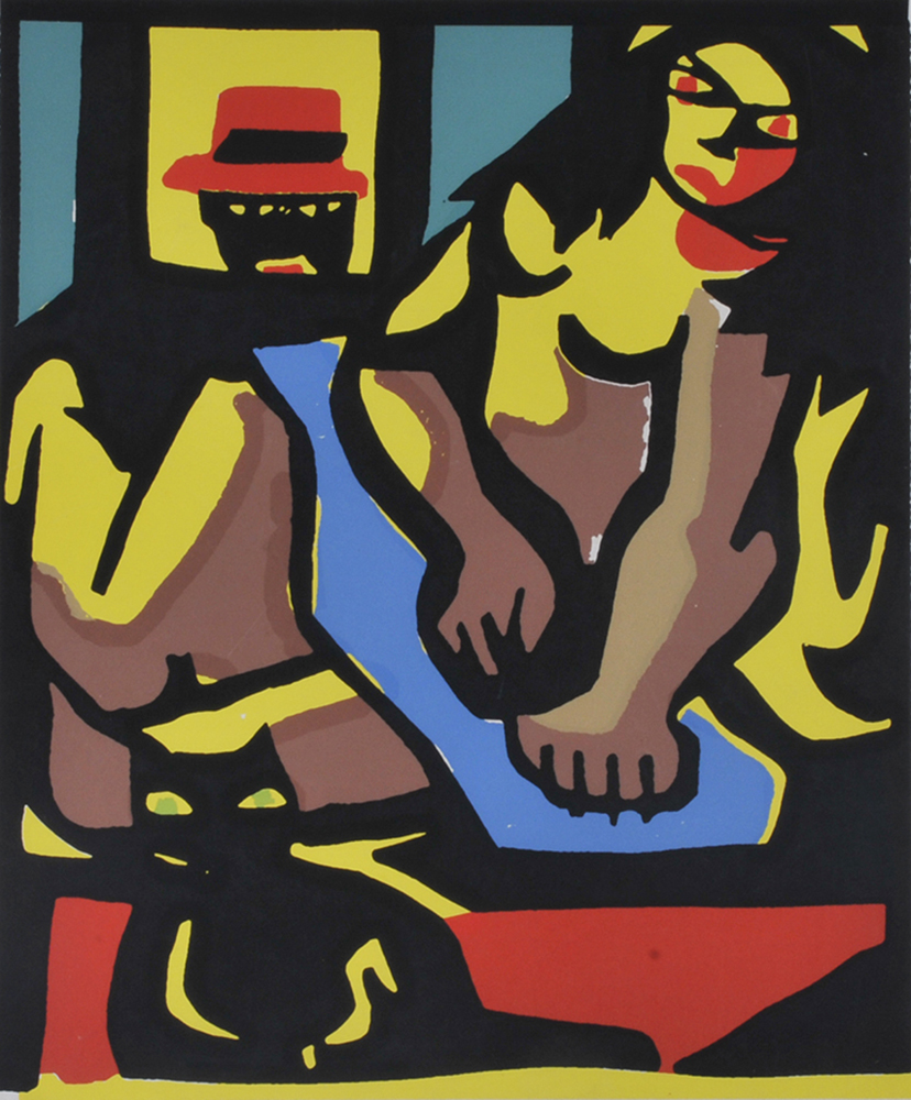 Emiliano Di Cavalcanti - Mulher com gato. Serigrafia, 50x40 cm, 1973, A.C.I.E. (serigrafada). Com moldura