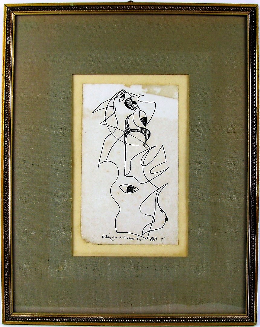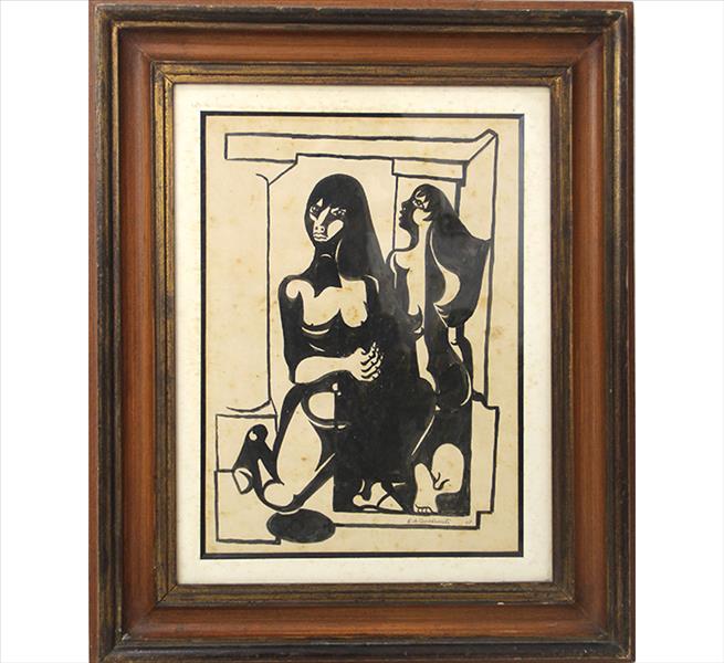 E. DI CAVALCANTI, Composição com Figuras, Técnica Mista sobre Papel, ACID, 29 x 20cm (m.i). Datado 1966