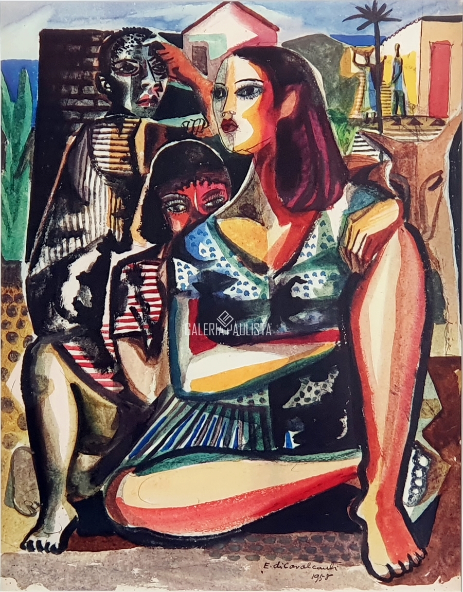 E. DI CAVALCANTI, Composição com Figuras, Técnica Mista sobre Papel, ACID, 29 x 20cm (m.i). Datado 1966