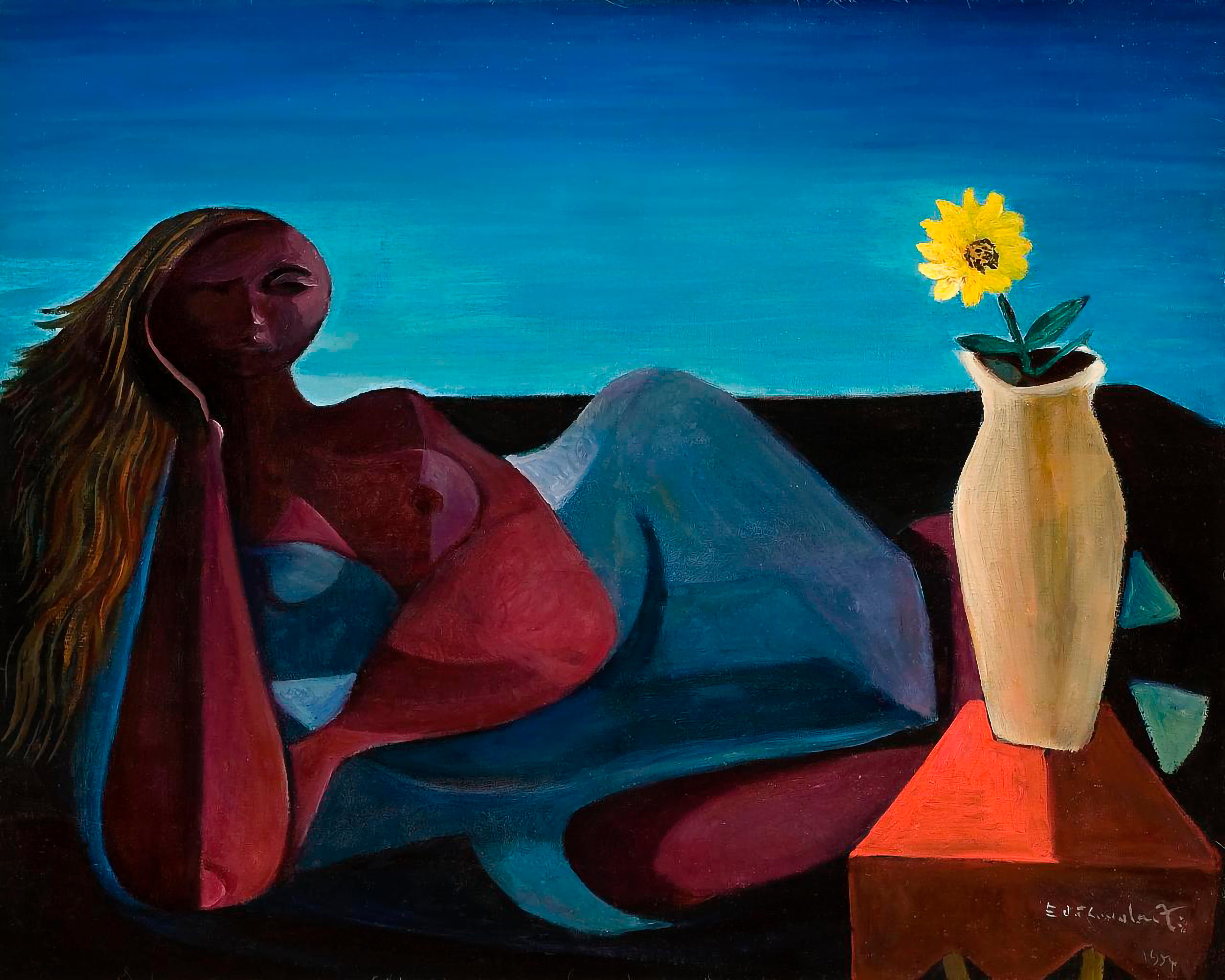Emiliano Di Cavalcanti - Figura feminina - Óleo sobre tela - Assinado canto inferior direito - 54 x 45 cm. Coleção Múcio Bandeira de Mello.